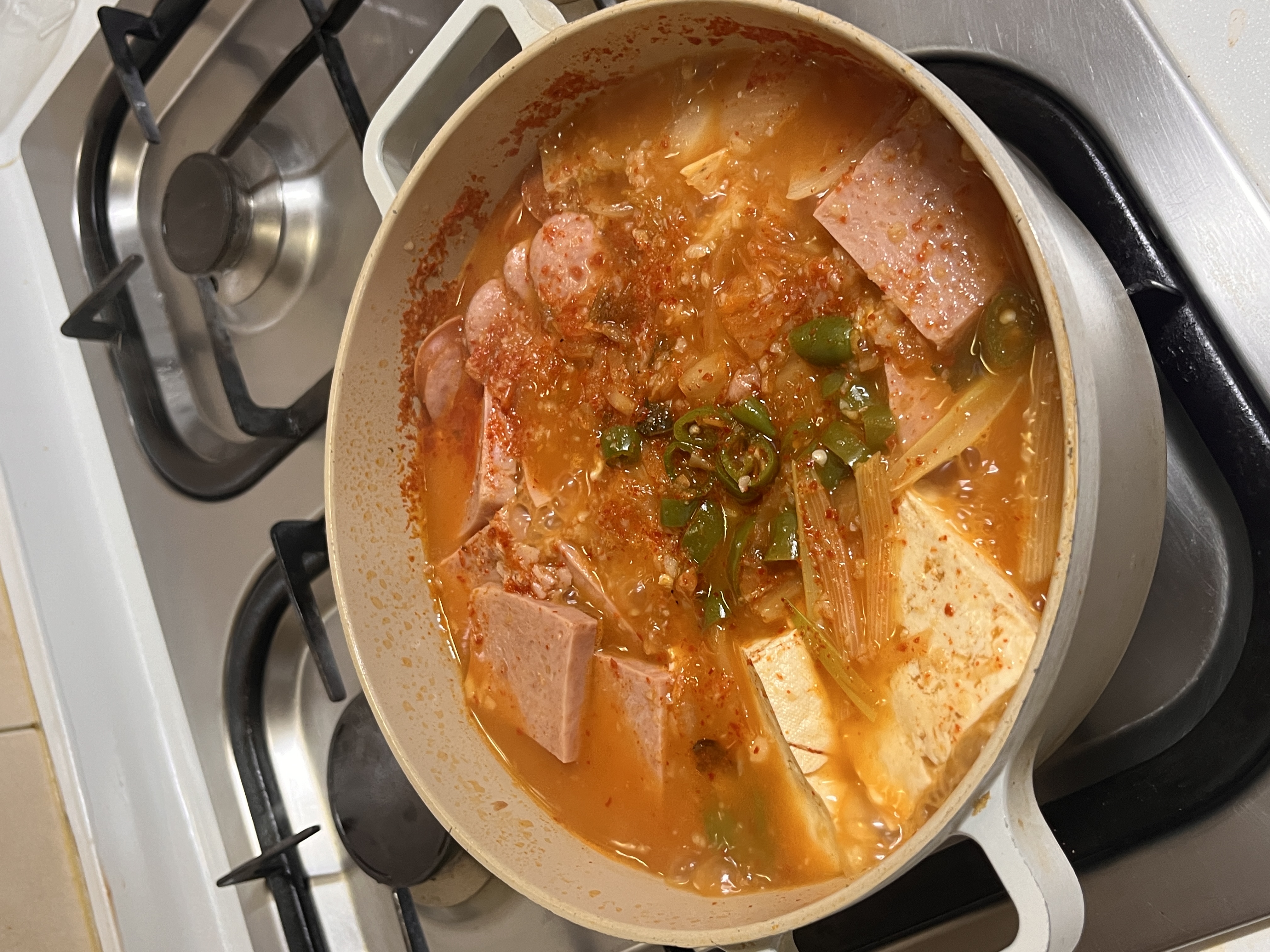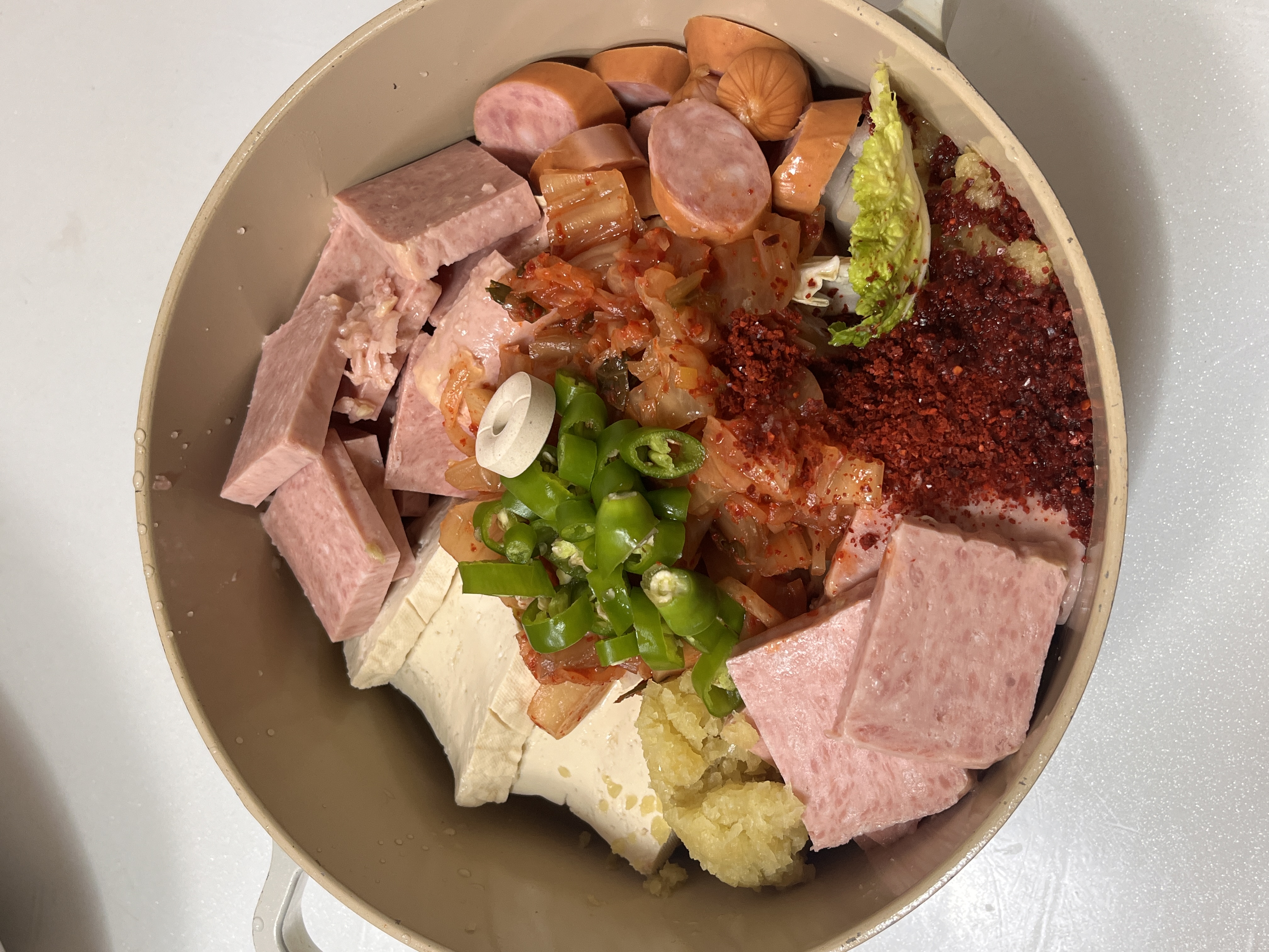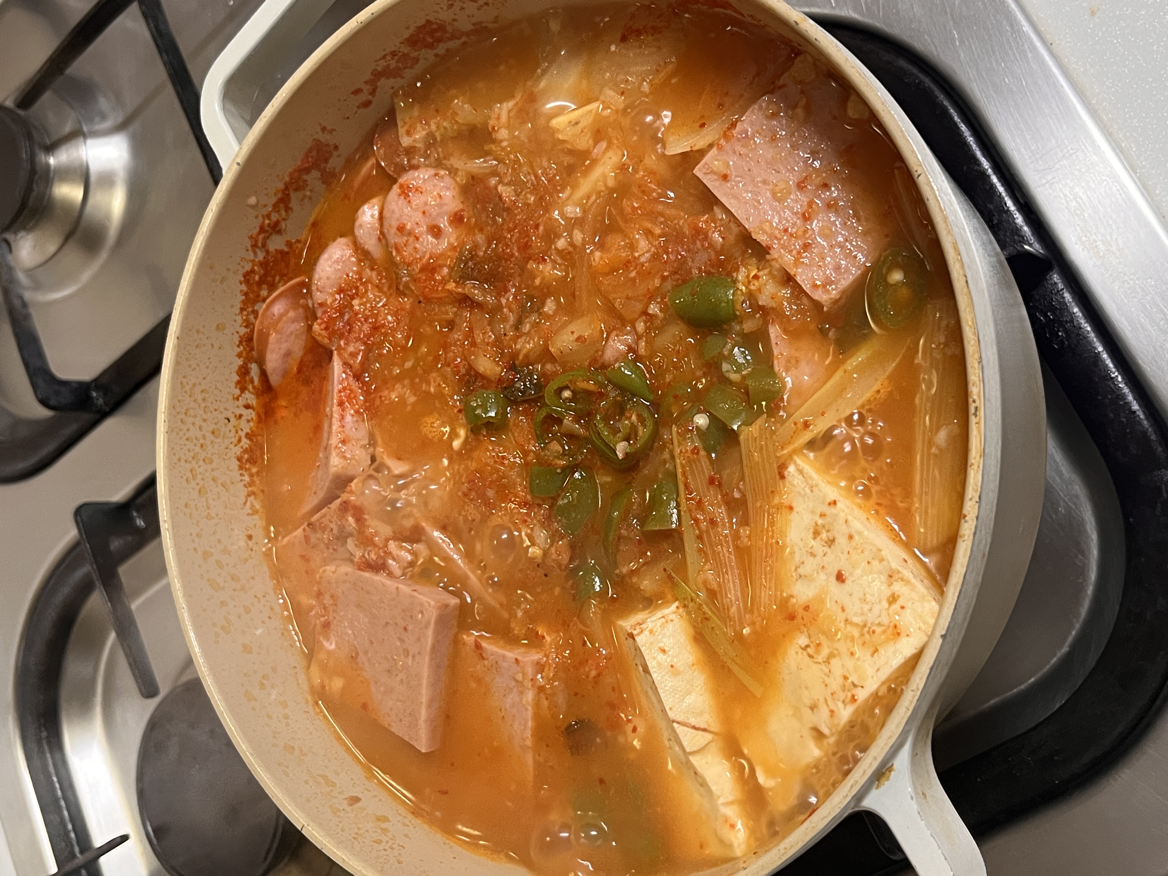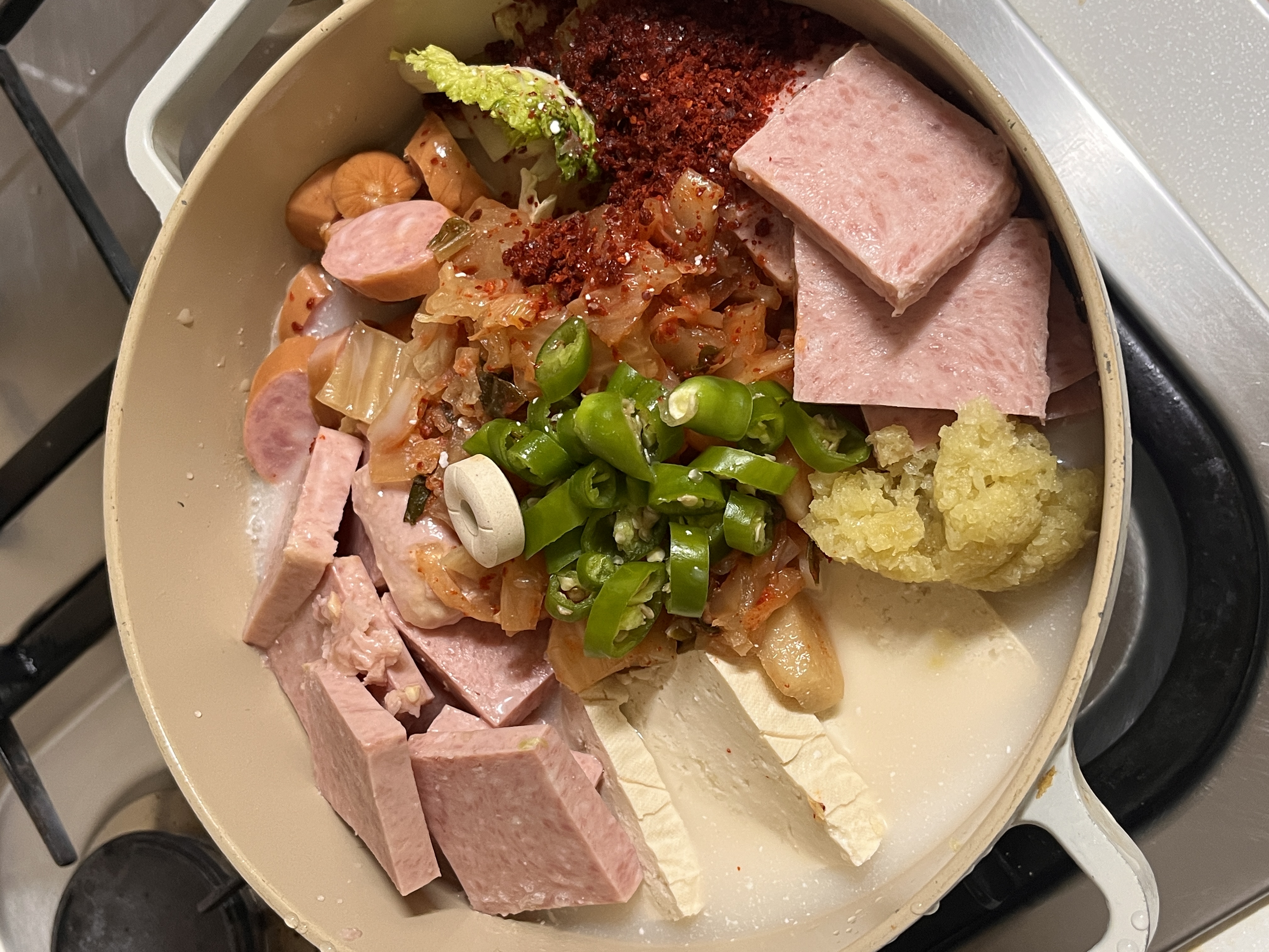 집에서 하면 뭔가 그 밖에서 먹는 부대찌개 맛이 잘 안나서 안 해먹었는데,