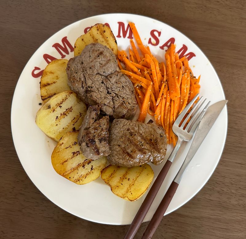 아침에 건강 검진이 있어 8시간 금식을 했습니다 그리고 피검사한다고 피도 빼고... 이런 날은 바로바로 고기고기! 죠!!! 그래서 스테이크 구워봤습니다 ㅋㅋ 검진하면서 보니 몸무게가 엄청 늘었더라구요! 예상은 했지만 ㅠㅠ 양심 상 당근라페와 감자까지 곁들여 고기만 먹지 않았다는 증거를...