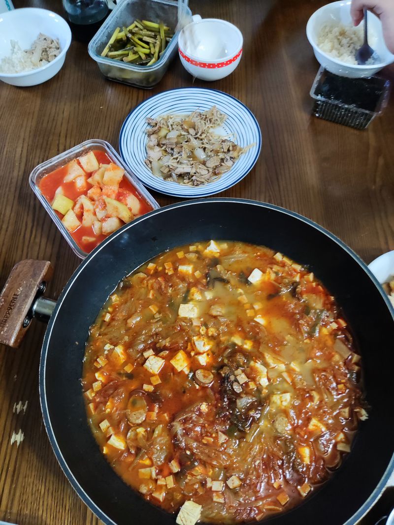 7시 넘어 들어갈까 싶어 엄마는 야근이고 해서 오늘만 챙겨먹으라 했더니만 다 안먹었다고 차려달래서 보니 밥솥도 비었고 하다보니 쌀 씻는 김에 쌀뜬물 챙겨 김치찌개 민찌에 스팸도 한 캔 두부도 500g 넉넉히 다 차리니 8시인데 맛나게 먹어주어 미안하고 고맙고 아빠가 프리랜서라 미안하다