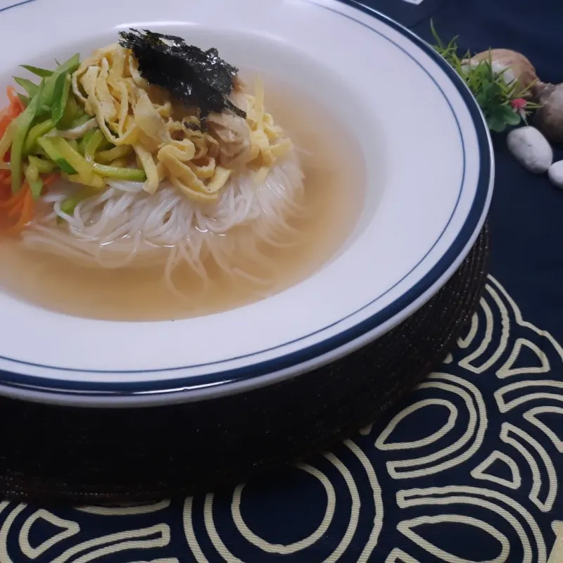 5. 고명을 올리고 육수를 부어 주면 끝.