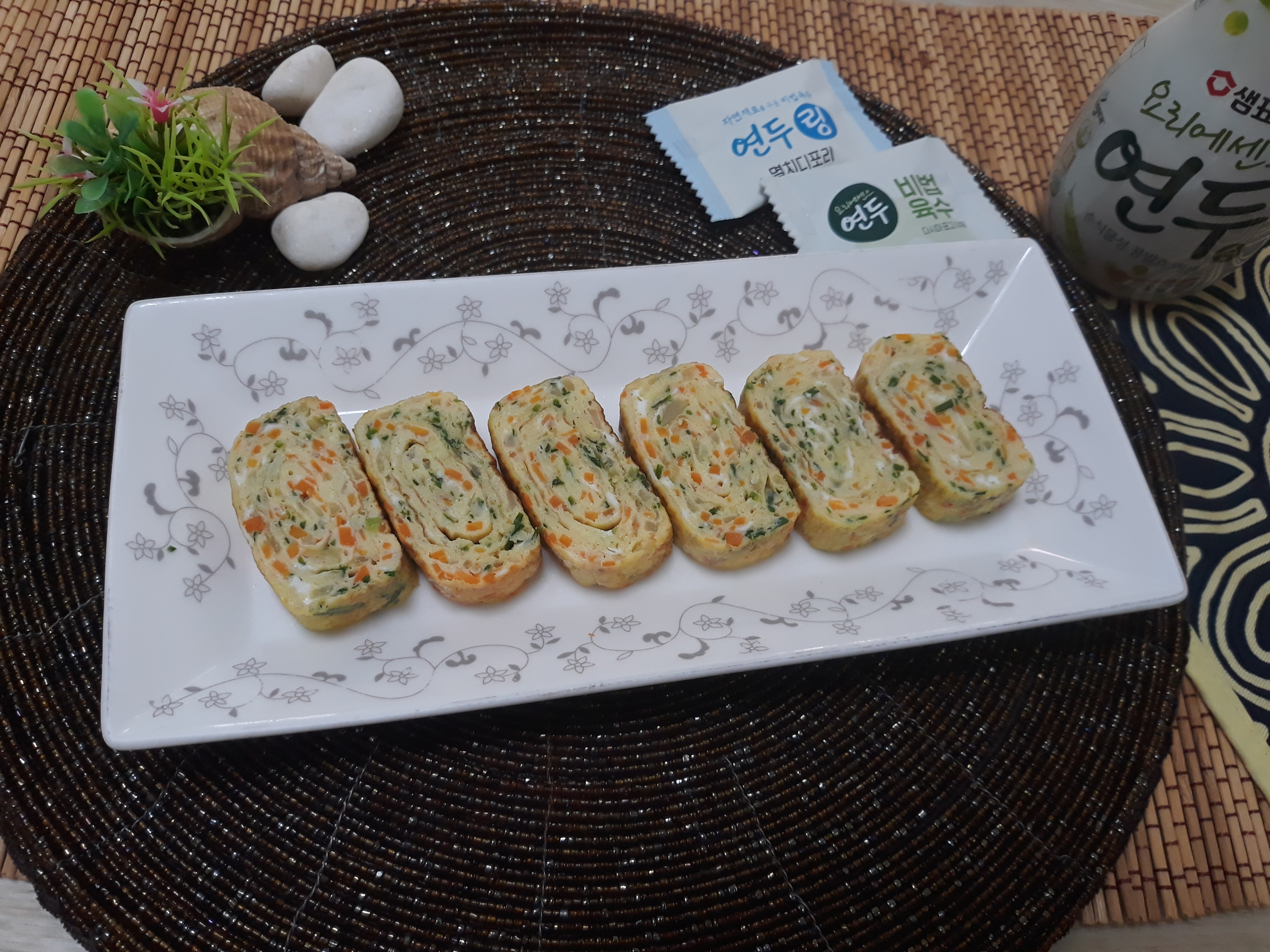 2.호박,당근은 채썰어 볶아주고 달걀도 풀어 지단을 부쳐 채썰어 줍니다.