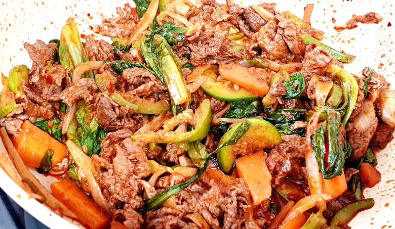 제가 좋아하는 고기 듬뿍과 식감 좋은 당근도 큼직하게 넣어주고 달달한 애호박도 함께 들어가니 너무 잘 어울리네요~