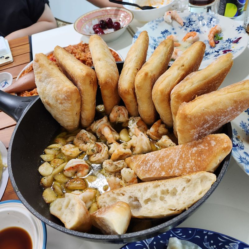크림새우와 새우감바스는 새우를 코스트코에서 대령으로 사서 가능했어요 새우는 사실 손질이 거의 다 인거갘아요 손질만 잘해서 튀기고 크림소스는 마요네즈와 황설탕을 졸여서 내고 ㅋㅋㅋ 생각보다 간단하지만(?) 누군가응 위해 대접하기엔 되게 좋았어요!!