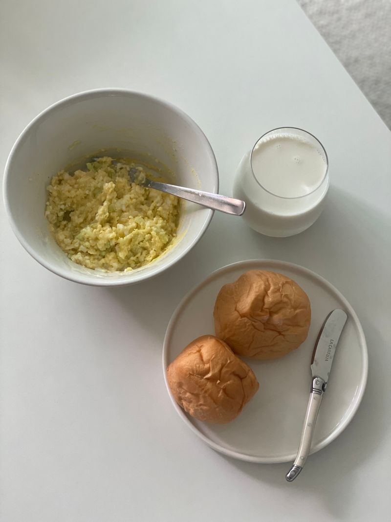 에그마요 만들어 모닝빵과 함께 💛