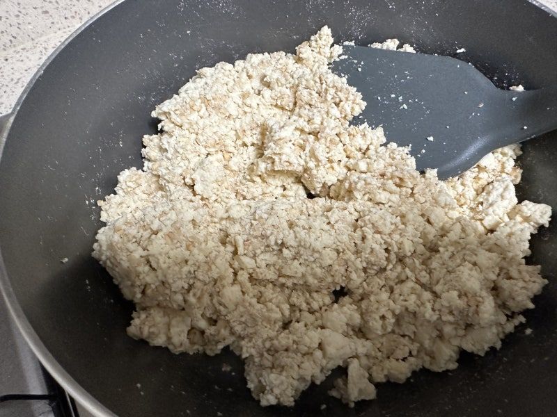 오트밀과 두부를 이용한 오트밀 두부밥이에요. 오트밀에 으깬두부를 넣어 볶아주면 오트밀밥이됩니다
