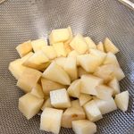 감자를 한 입 크기로 자른 후 물에 씻어서 전분기를 제거 해 줍니다