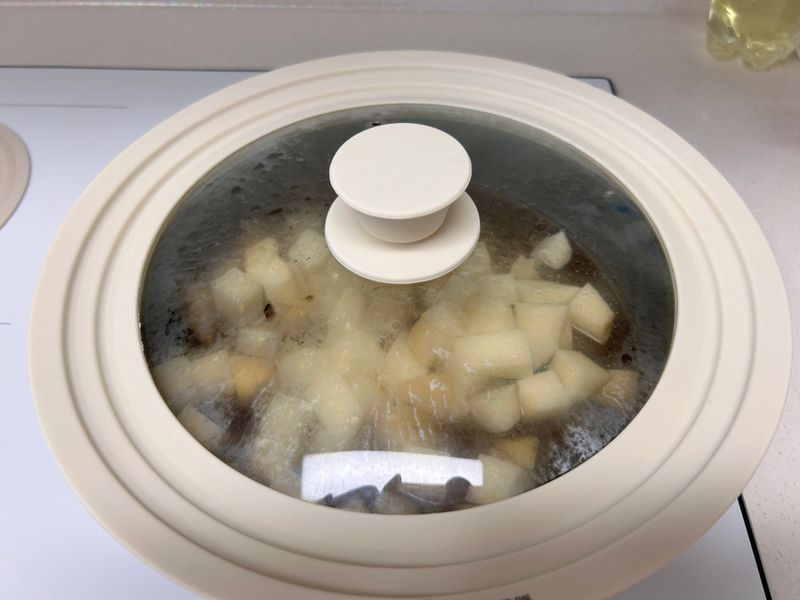 약 10분정도 뚜껑을 덮은 채로 감자를 익혀줍니다.