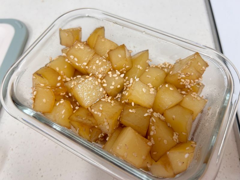 뚜껑을 열고 조린 후, 통깨로 마무리