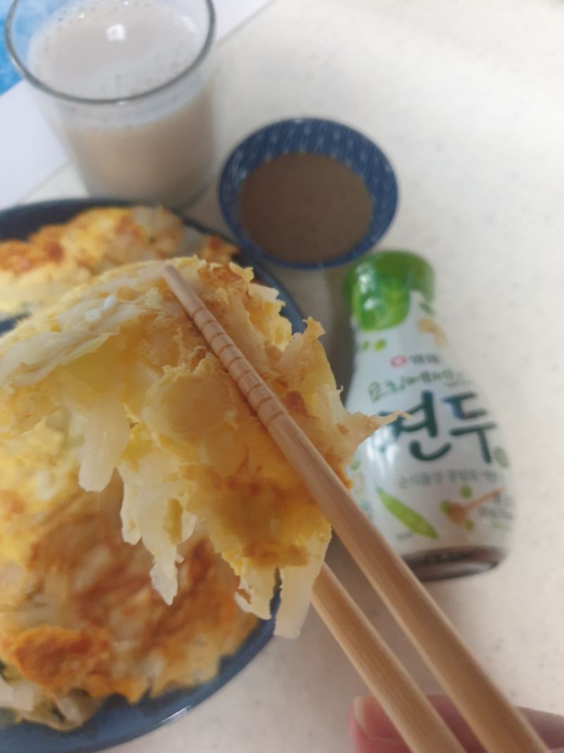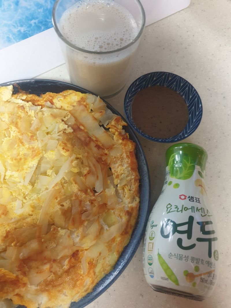 촉촉달걀양배추찜전 그냥먹어도 맛있지만 찎어먹는 소스는 취향껏~ 저는 참깨소스와 함께했어요.
