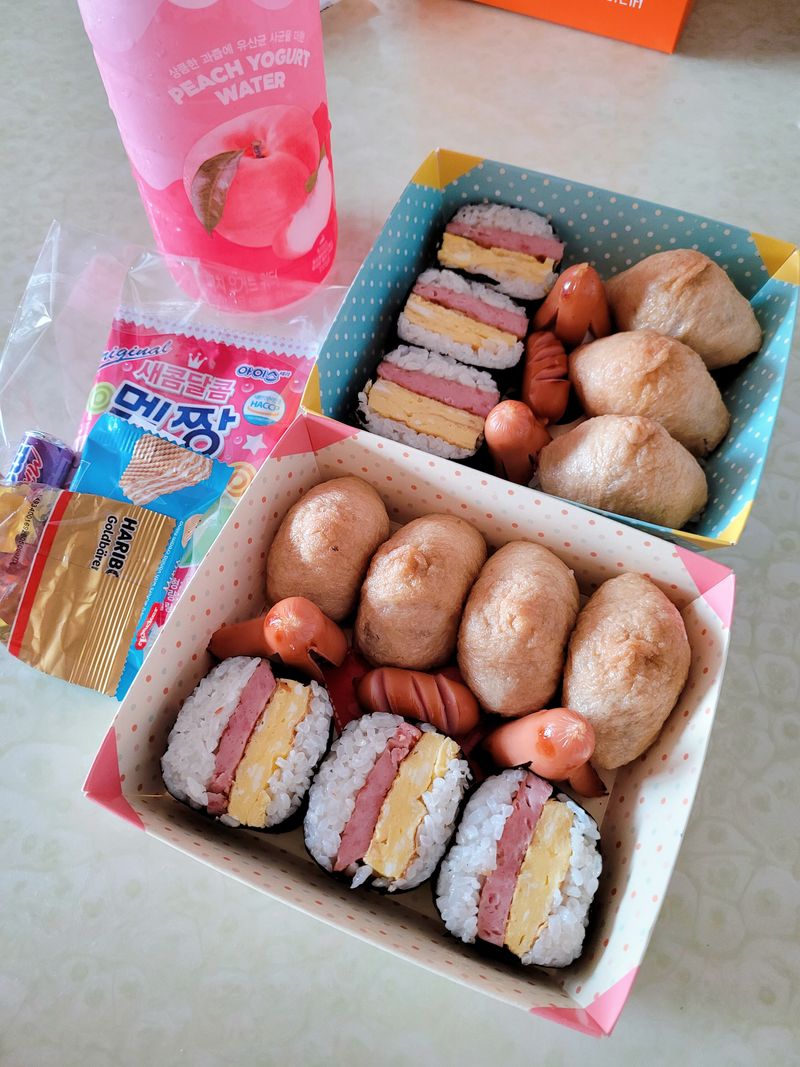 막내딸 현장체험 도시락으로 만들어본 스팸스무비&유부초밥 도시락 입니다.