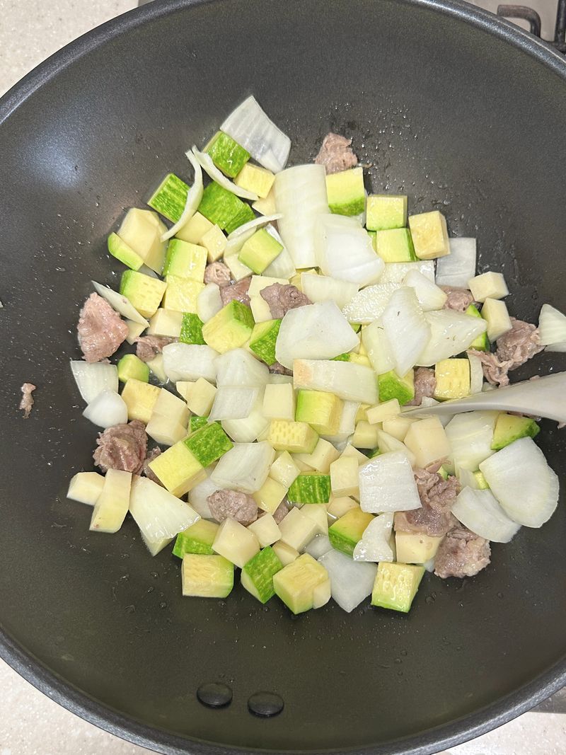 애호박과 양파는 익는 속도가 비슷해서 함께 넣고 볶아도 좋아요.