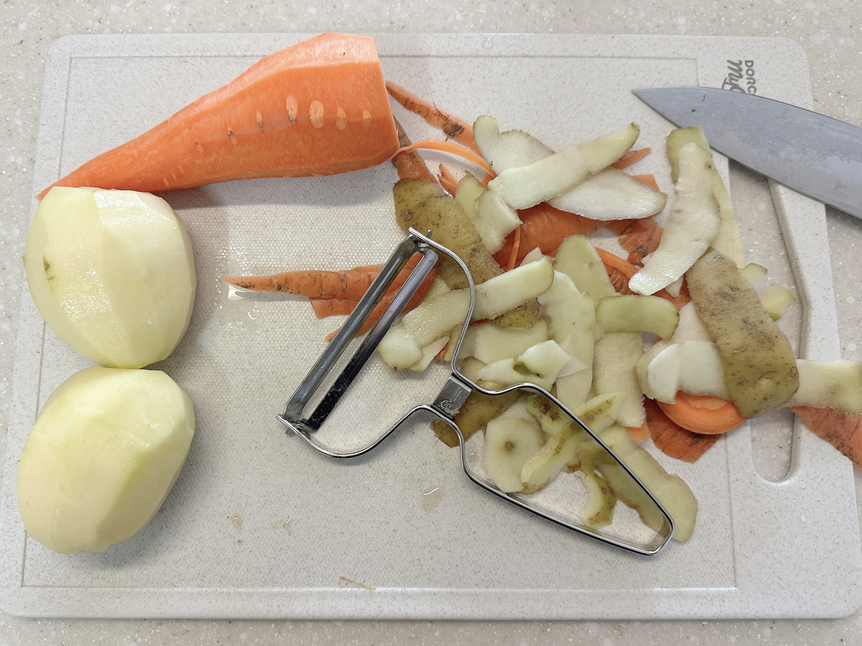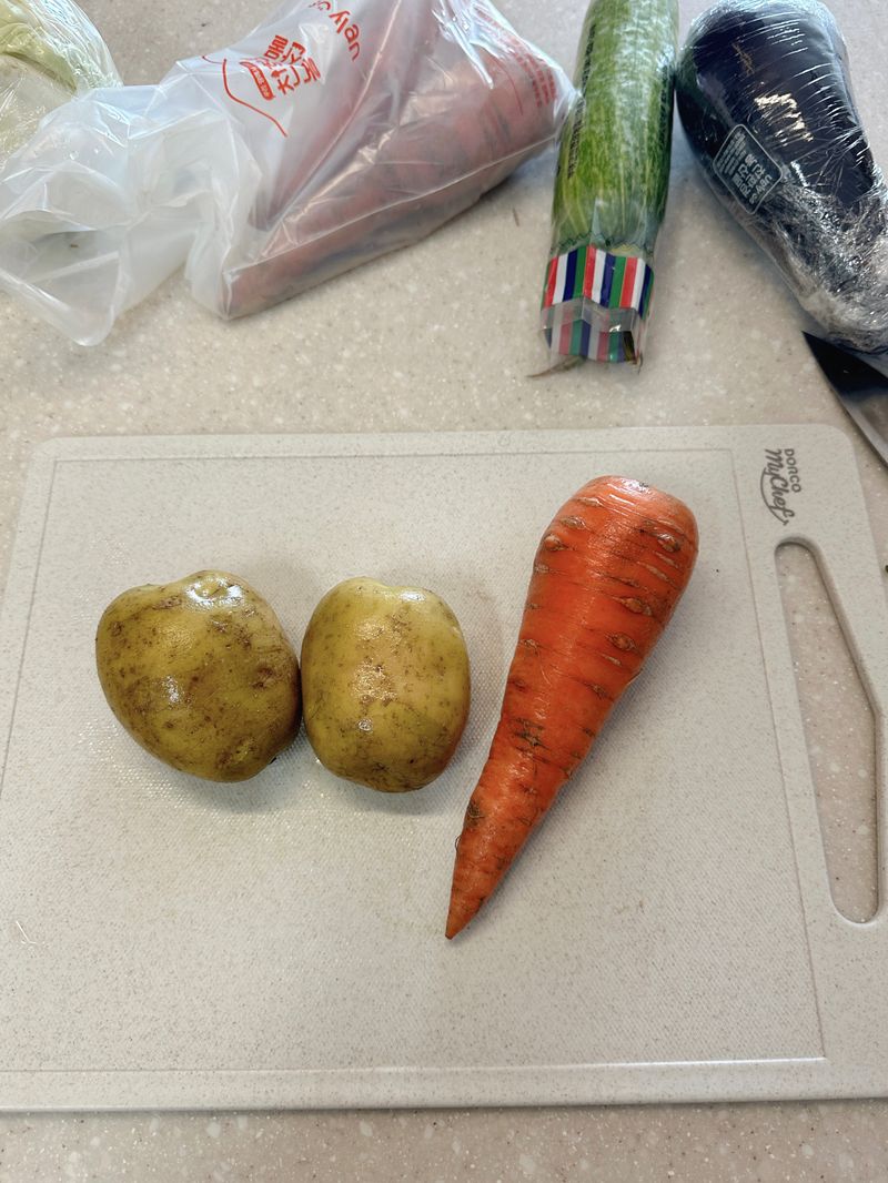 다이소에서 양배추 채 썰려고 산 채칼이 감자칼과 같은 건줄 이번에 처음 알았습니다 😅 (정말 초보 티 많이 나죠?) 감자 껍질이 정말 잘 깎여서 행복했어요😚 감자와 애호박은 통썰기 ->깍둑썰기로 뚝딱!