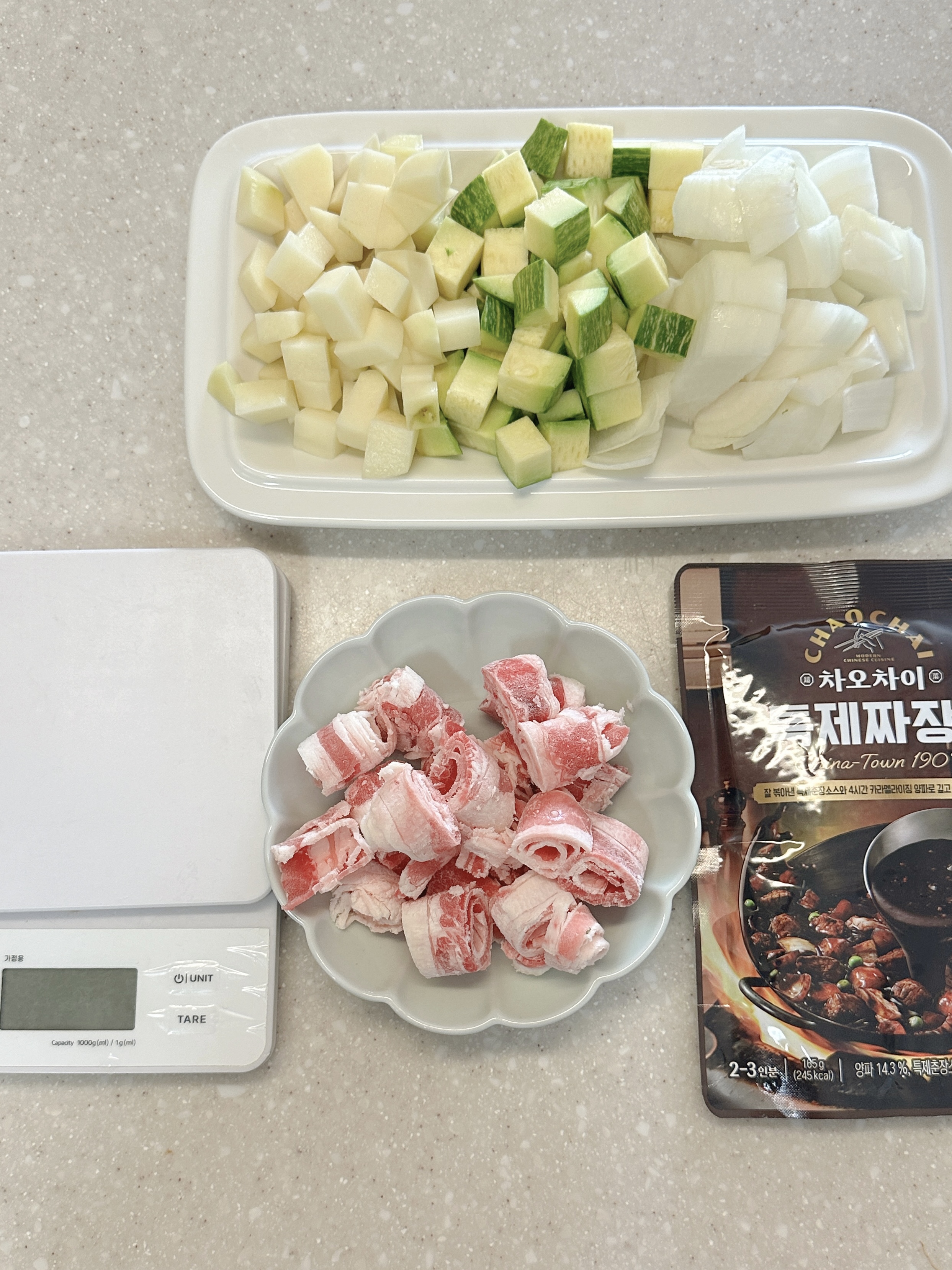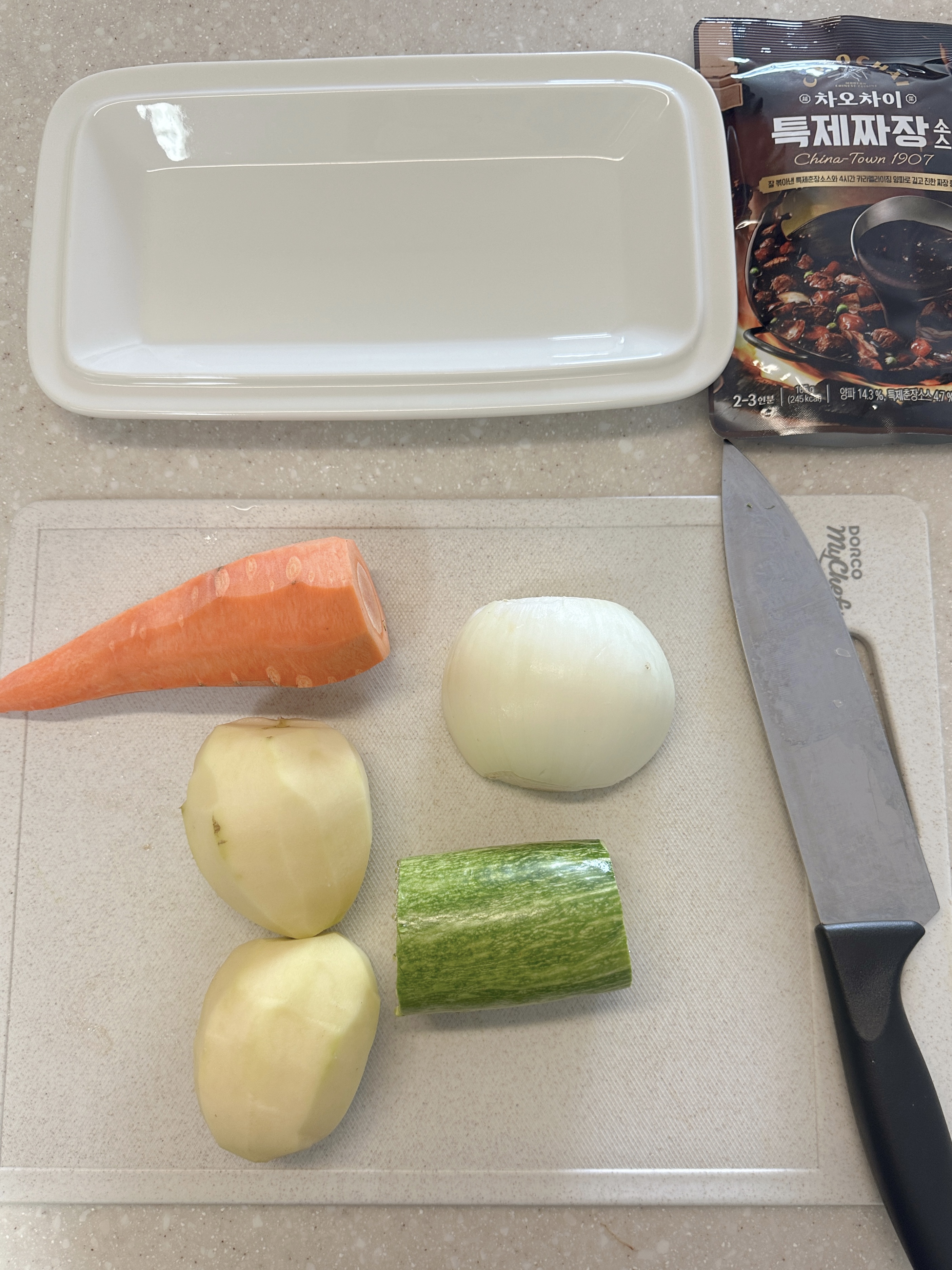 우선은 깍둑 썰기를 연습하기에 최적화된! 네모네모 재료가 필요한! 짜장밥으로 저의 새미즈 2기 첫 요리를 선정해 봤습니다. 네모네모 재료 필요한 또 다른 강자! "카레"와 고민 했지만, 저는 짜장이 더 좋아서😼