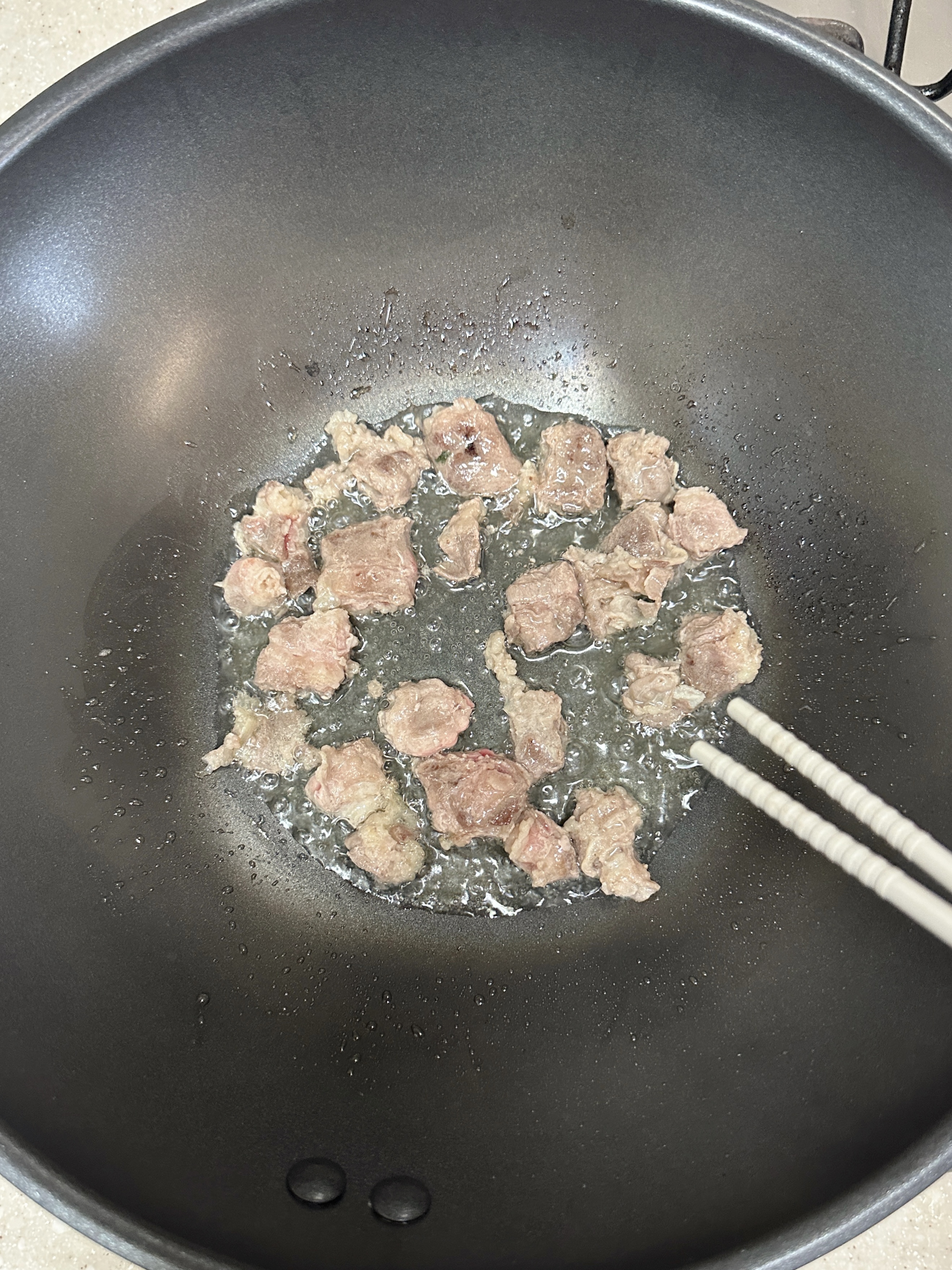 식재료에서 물기, 전분기등이 많이 나오면 잘 달라붙어요.