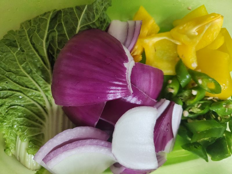 야채와 함께 먹으니 느끼하지도 않고 맛있네요-♡
