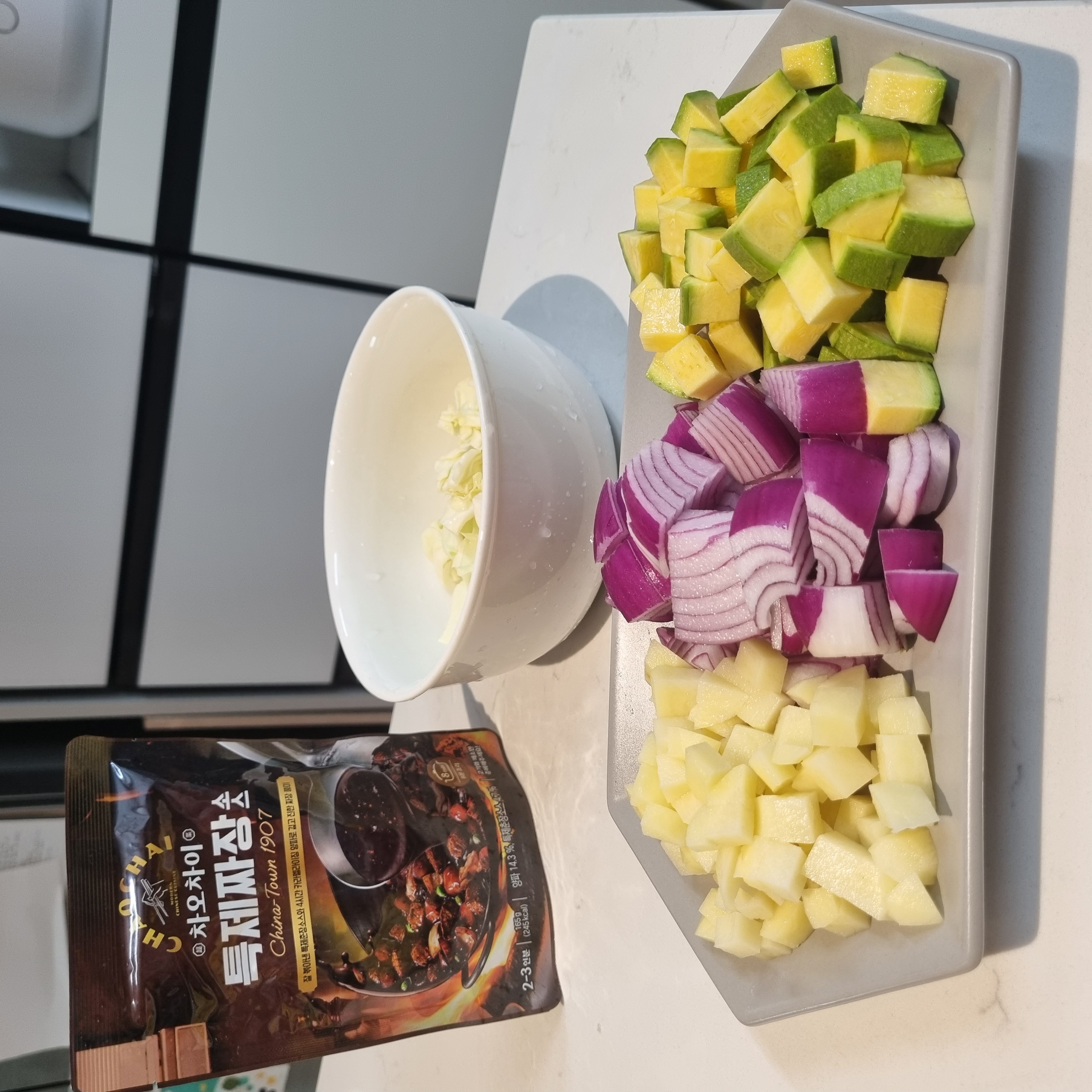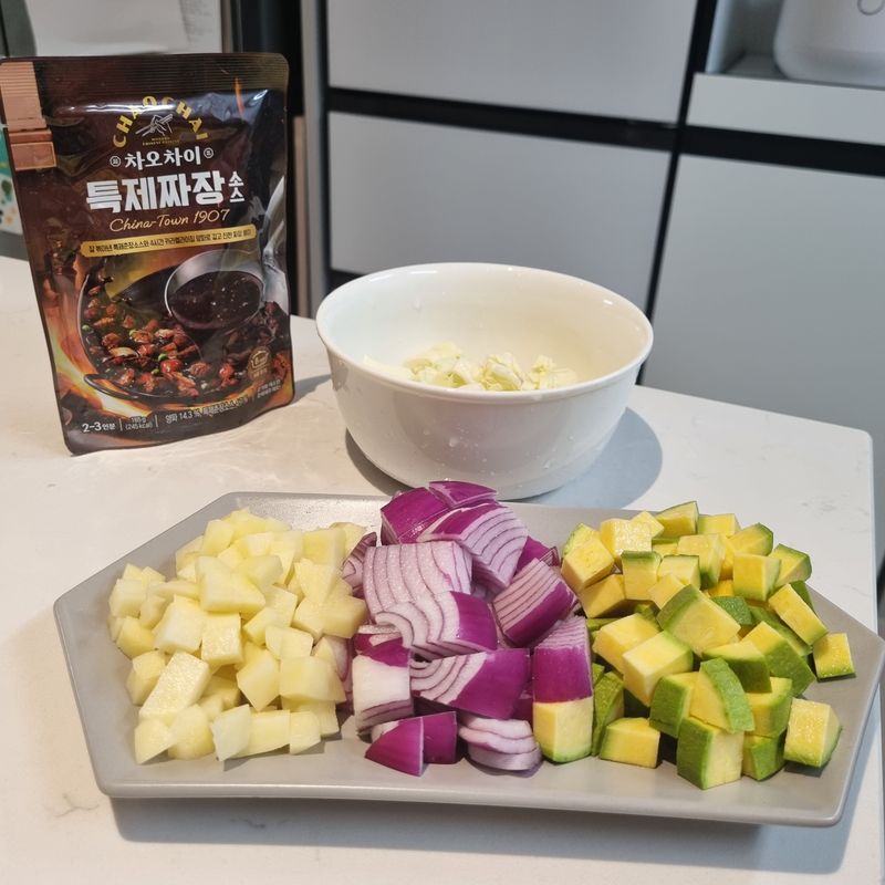애호박, 양파, 감자, 양배추를 함께 넣은 짜장만들기에 도전해보았어요!