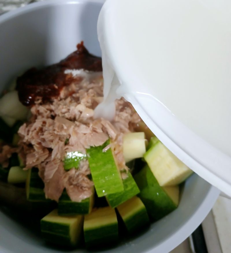 3.육수는 쌀뜬물을 사용해주세요. 재료가 잠길정도로 자작하게