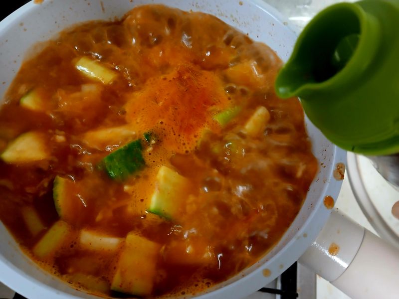 4.20분동 보글보글 끓여주세요. 그리고 연두 작은 티수푼을 넣어주세요