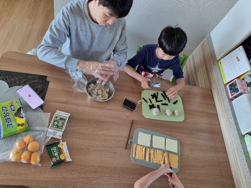 주말엔 아빠와 함께 요리를 해요~ 간단한 브런치 주먹밥, 김밥 스파게티 아이들도 즐거워하고 맛도 끝내줘요