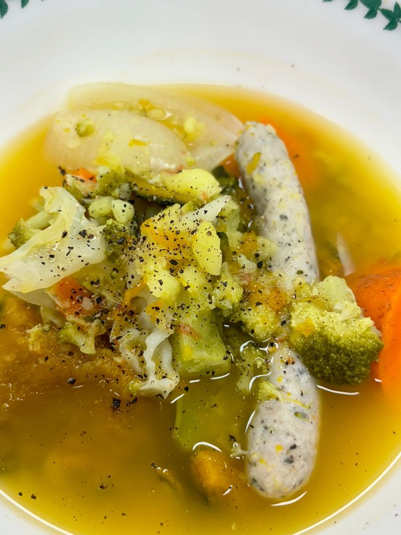 단단한 야채우선 물과 치킨스톡넣고 끓이다가 나머지야채와 소시지 넣고 끓여주면 끝입니다
