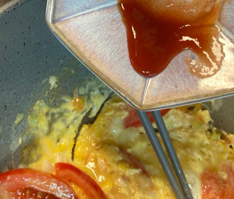 토마토,달걀,대파와 연두순,케찹,설탕으로 만들어요