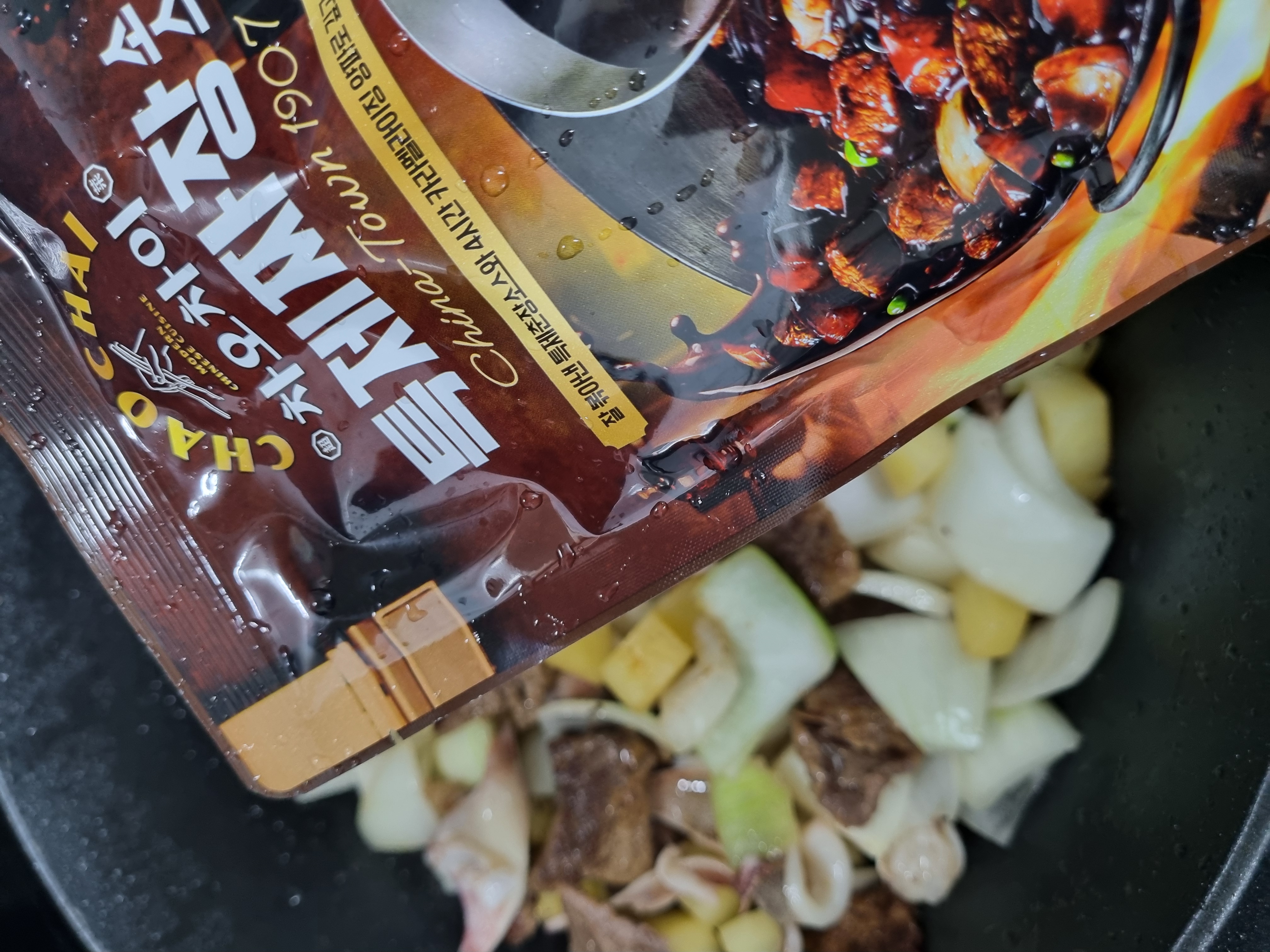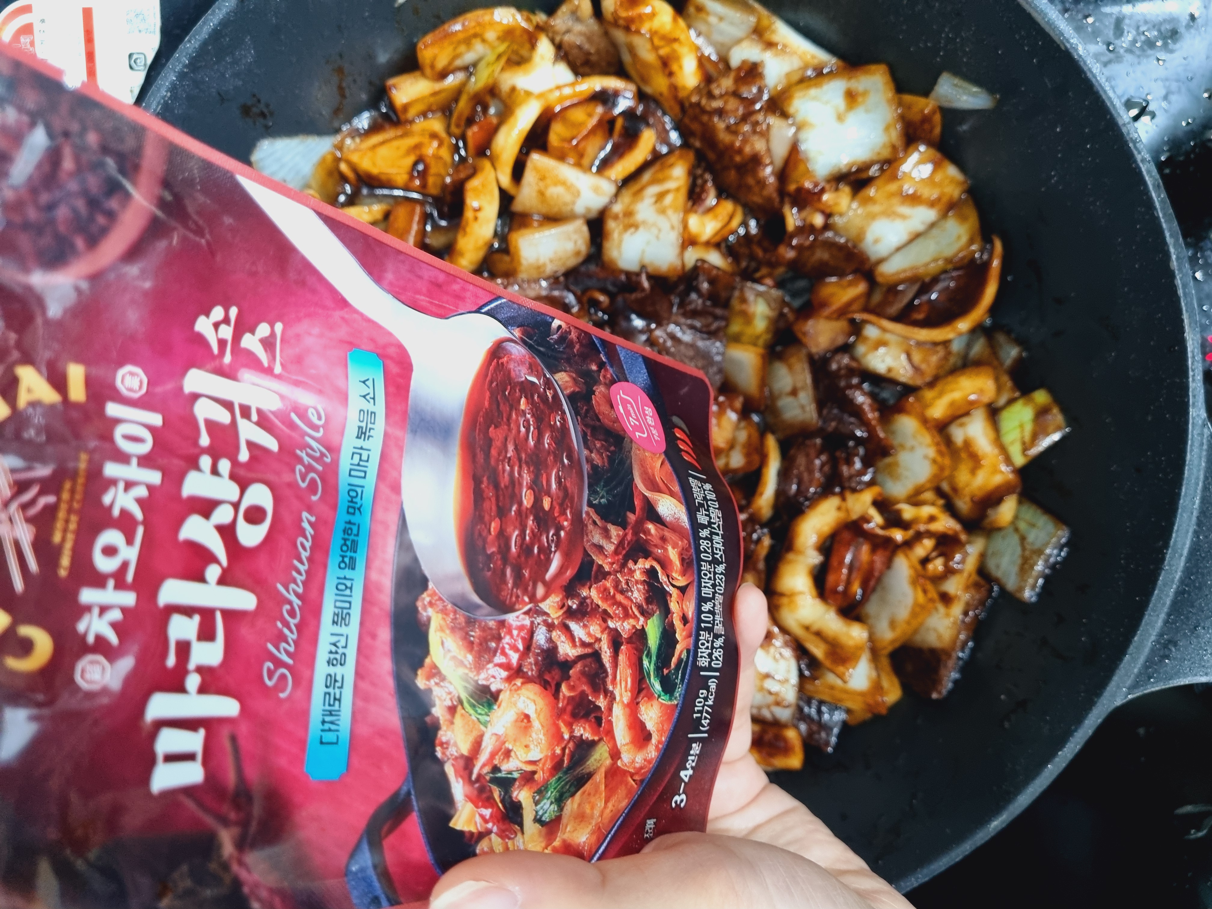 차오차이 특제짜장으로 짜장면을 만들어 봤어요. 차오차이 마라샹궈 소스 한숟갈을 더해서 감칠맛 있는 매운맛 까지 더하니 호텔 중식당이 부럽지 않네요. 마트에서 재료 배달 시켰는데 돼지 등심이 무항생제라 너무 비싸길래 세일하는 미국산 소고기를 넣었더니 맛이 더욱 고급스러워졌어요.