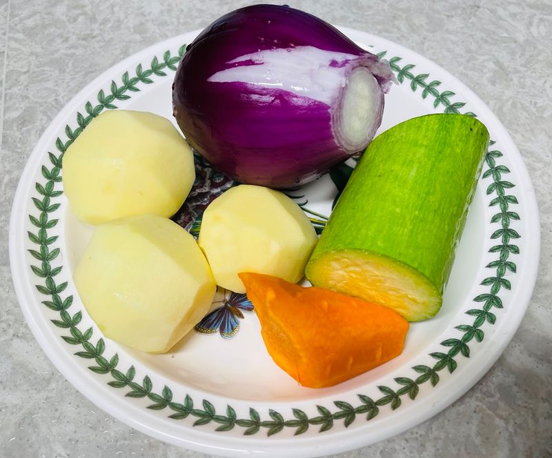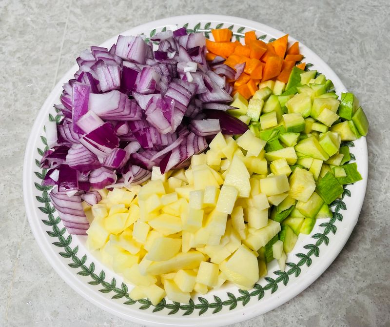 1. 입맛에 따라 넣고 싶은 재료를 가감해주세요! 전 단맛을 내고 싶어 양파를 많이, 안 좋아하는 당근은 적게 넣었습니다 😁