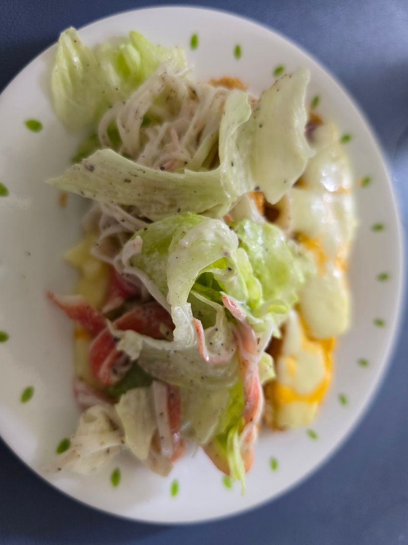 핫도그로 초간단 옛날사라다빵 st일로 만들었어요. 핫도그는 전자렌지 살짝 돌리고~~ 양배추 대신 양상추 씻어서 크래미넣고 샐러드 만들어서 넣었어요. 간단하고 푸짐하게 먹을 수 있어서 아이간식으로도 좋아요.