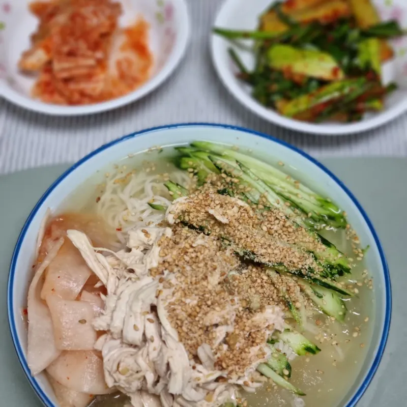 살얼음낀 냉면 육수에 소면말아서 올려먹으니