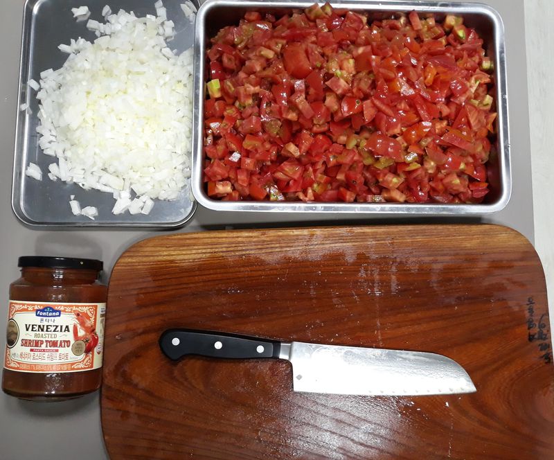 양파 달달 볶다가 토마토 투여하고 여기에 제품 살짝 피처링~