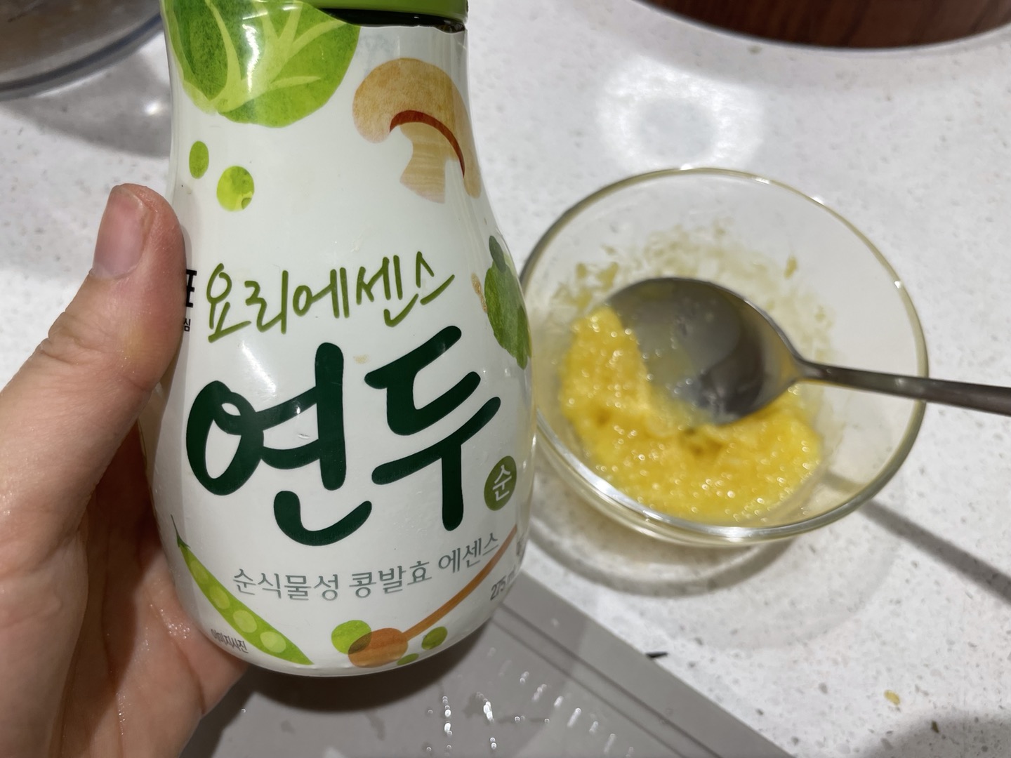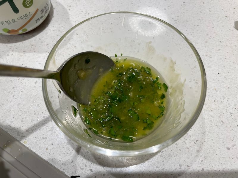 연두 1/2스푼, 다진마늘과 다진 파슬리(또는 가루파슬리)를 넣고 잘 섞어주세요.