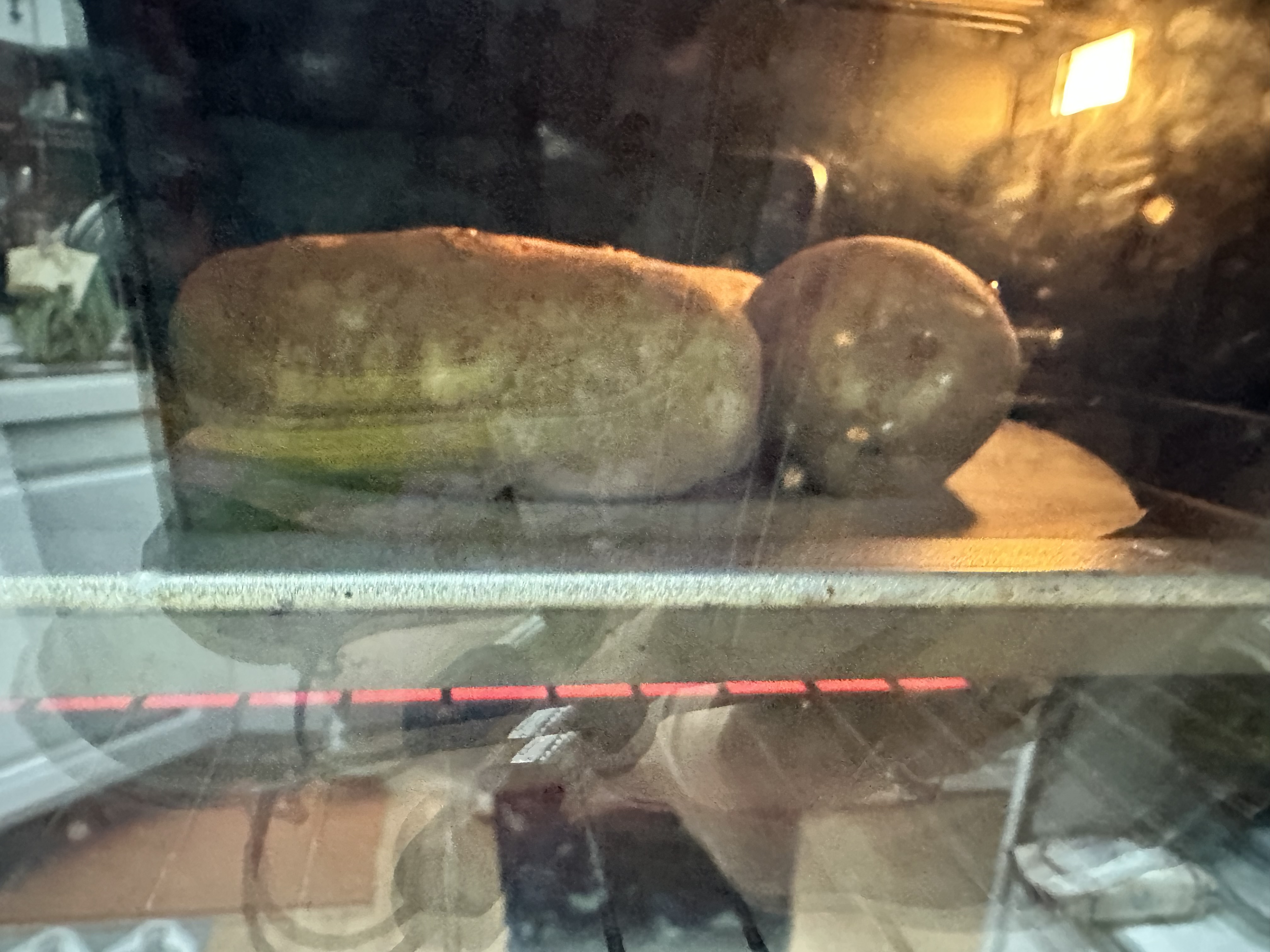 오븐에서 꺼내 반으로 칼집을 내고(반 자르면 안됩니다)