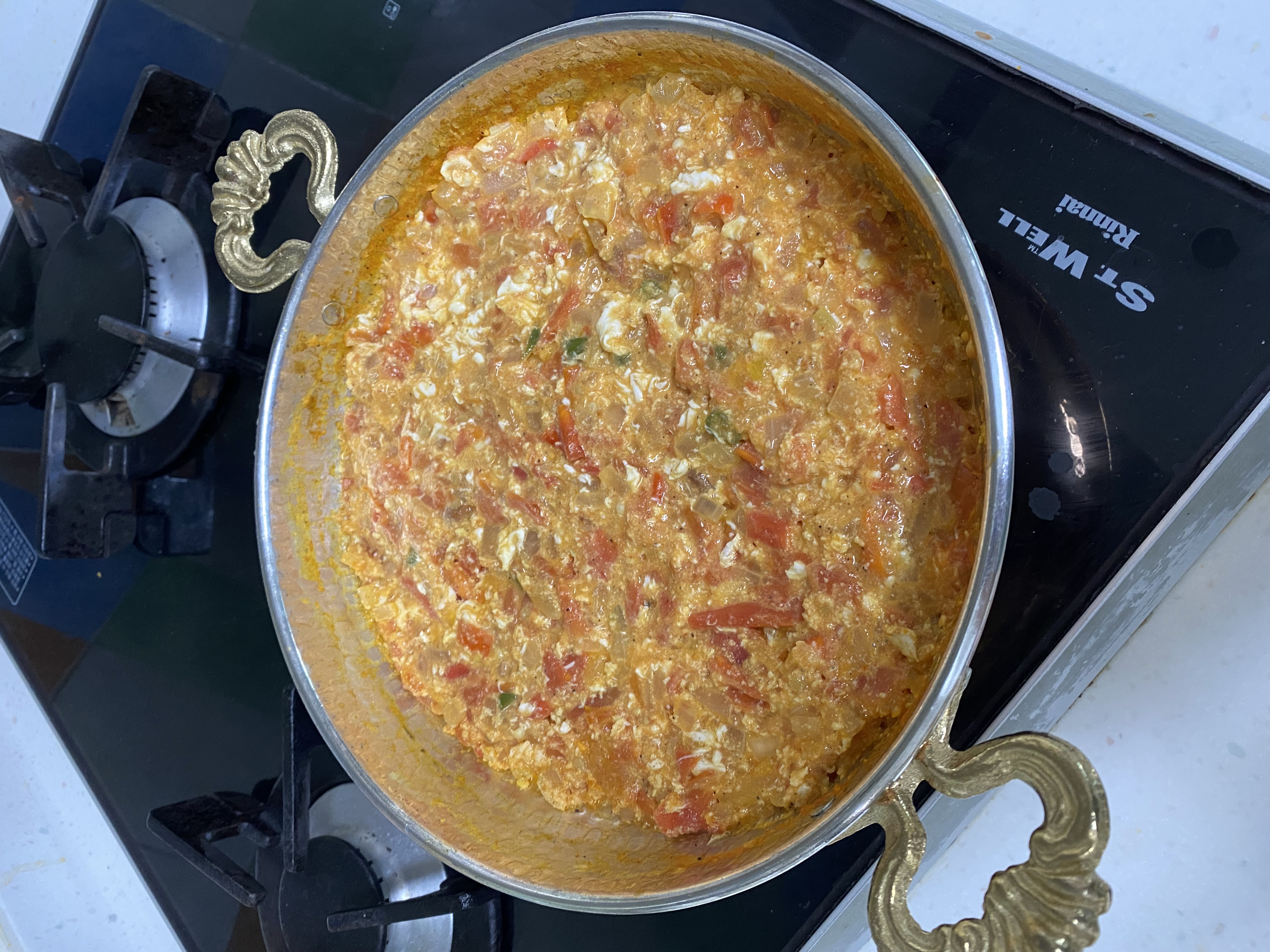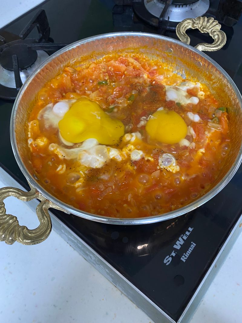 토마토가 뭉글뭉글 끓으면 계란 투하 (계란은 작은 후라이팬기준 3개 정도?)