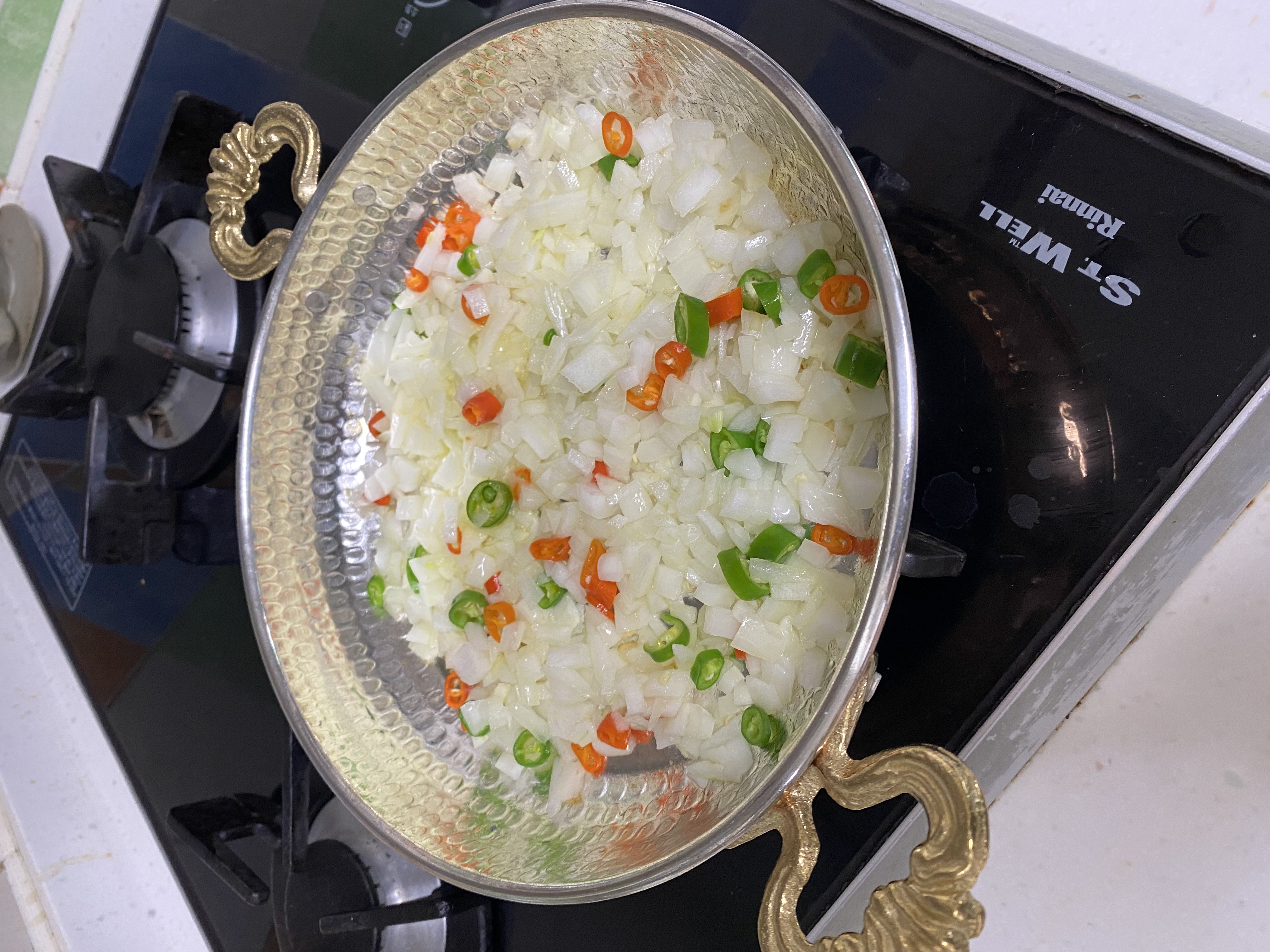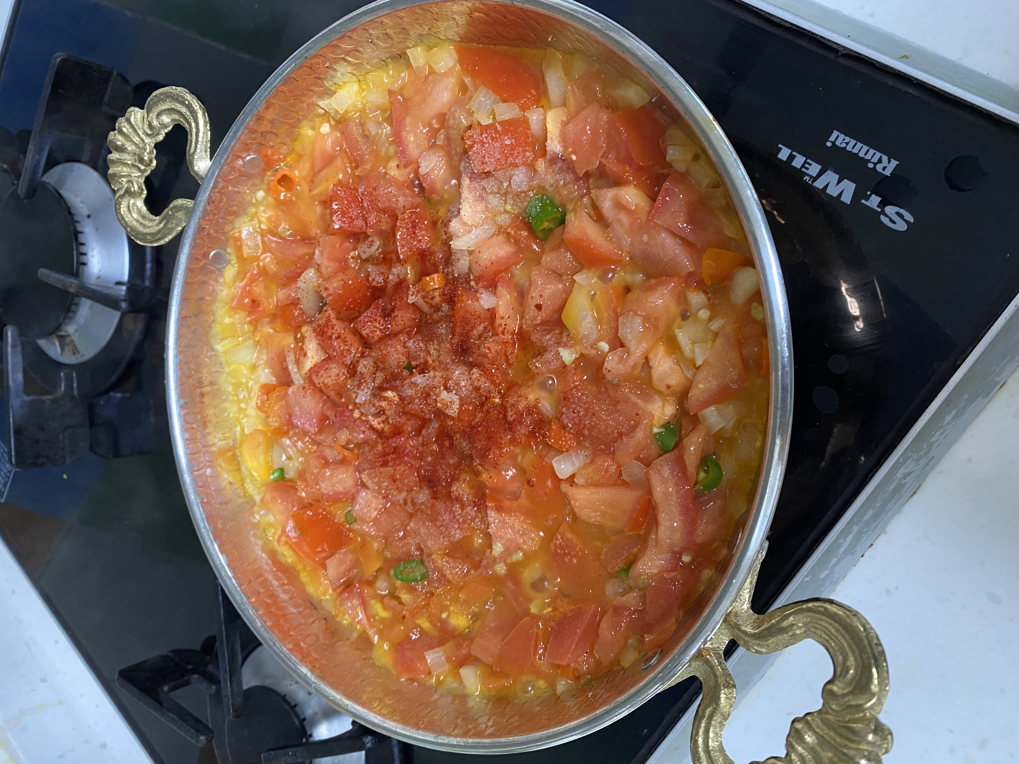 버터,토마토 양파 청고추 홍고추 소금 후추 고춧가루 계란! 끝!