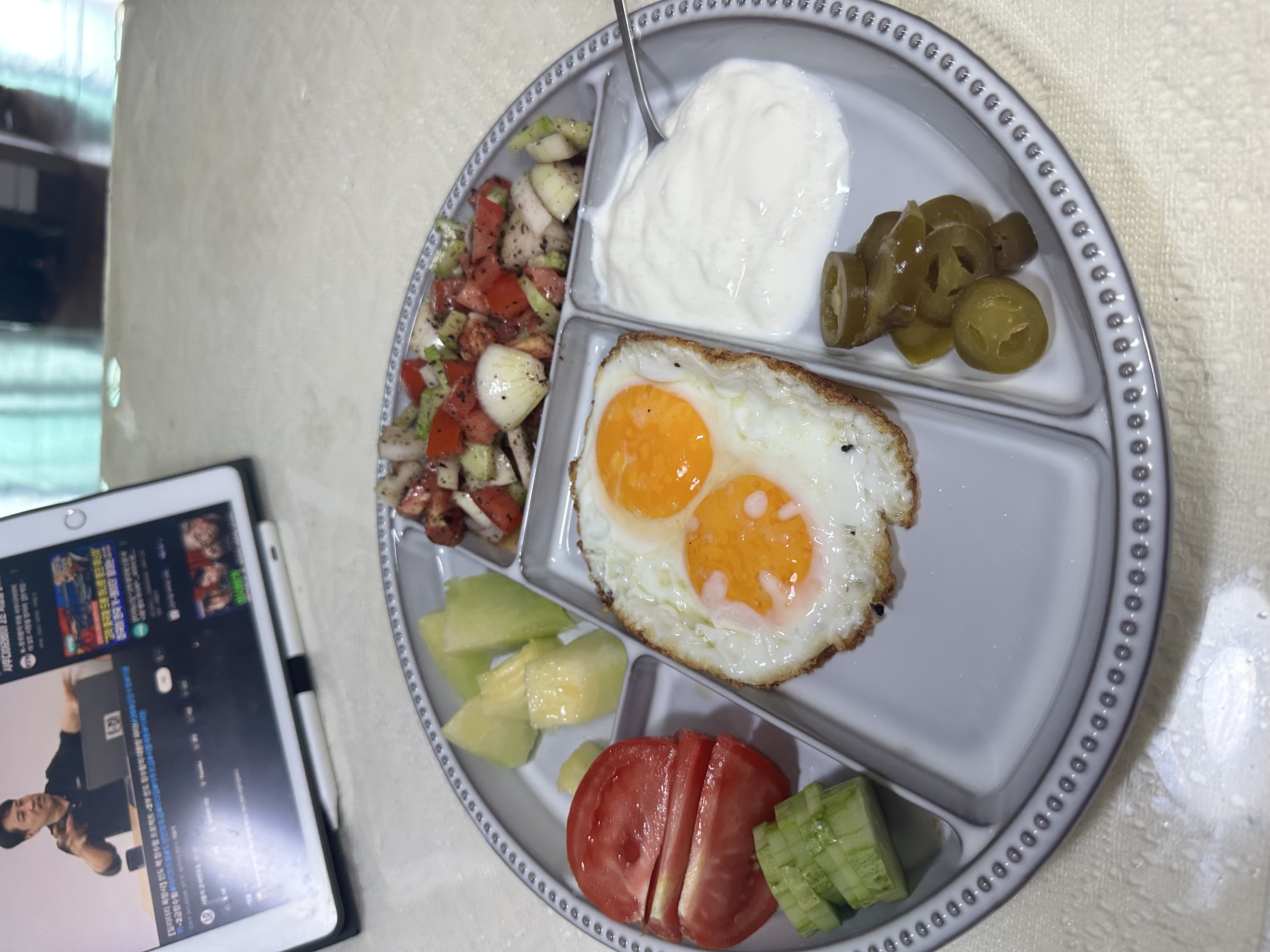 오이, 토마토 송송 썰고 메네멘, 빵, 올리브, 쨈, 카이막 꿀, 홍차가 있으면 완벽한 튀르키예식 아침식사!!