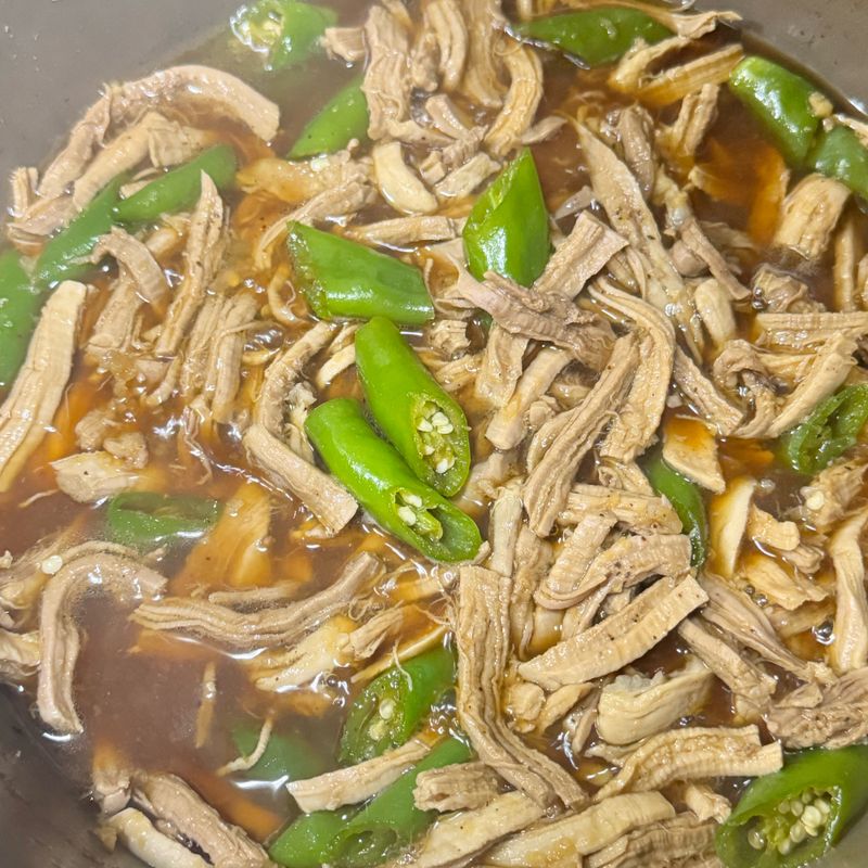 재료 조합: 돼지고기와 고추(청양 또는 꽈리) 조합이 매우 좋았습니다. 두 재료가 함께 어우러져 풍부한 맛을 내어 가족 모두가 맛있게 먹었습니다.