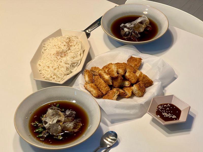 푹푹 찌는 요즘 날씨에 시원한 냉모밀국수&돈까스