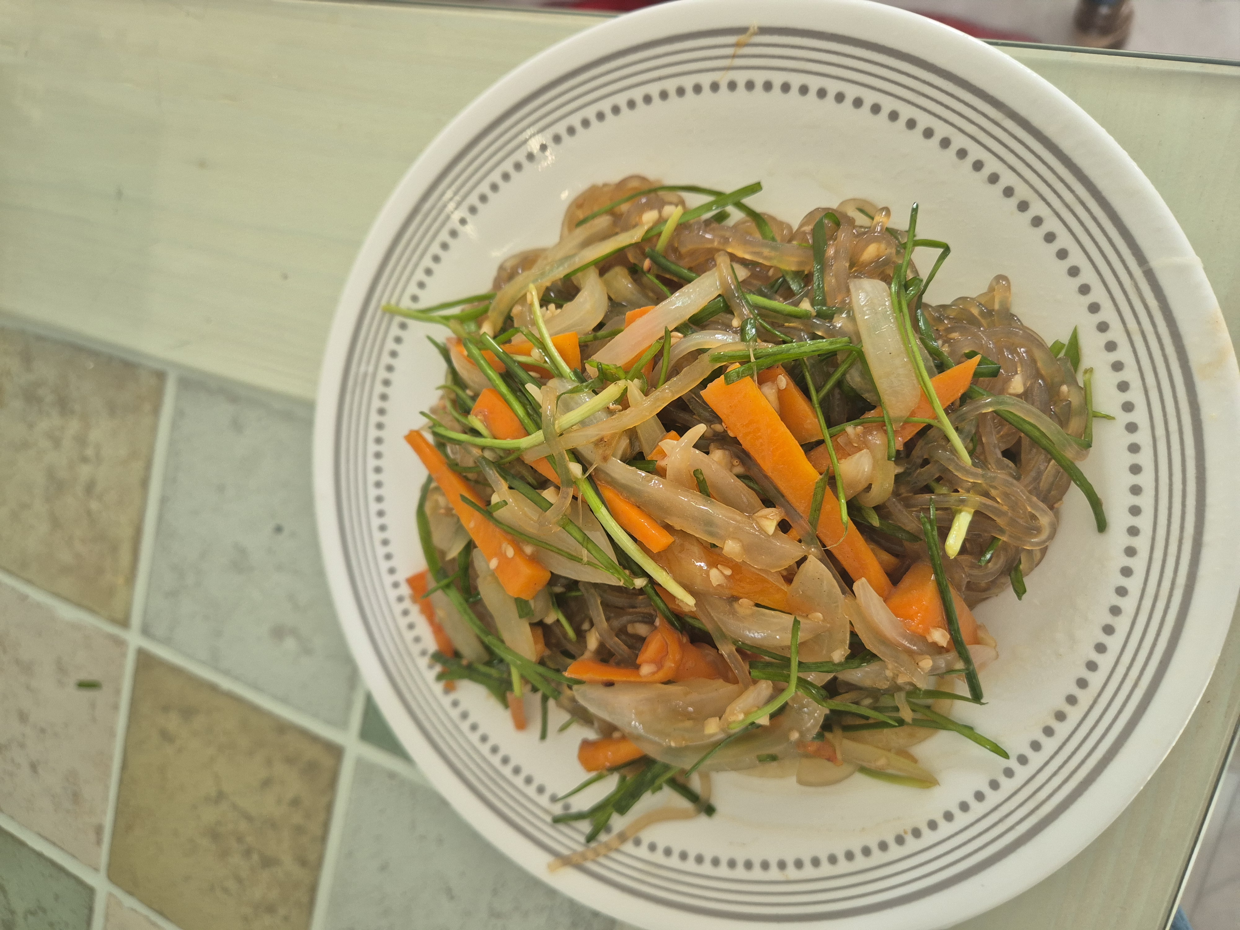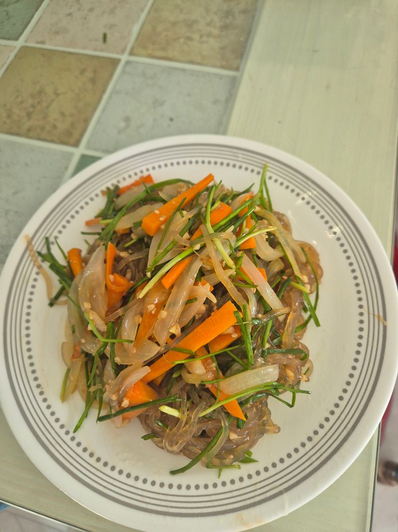 그 후에는 부모님이 하셨던 걸 생각하면서 만들었더니 꽤 괜찮은 결과가 나왔어요. 맛도 괜찮았고 비주얼도 나름 잡채같았습니다.
