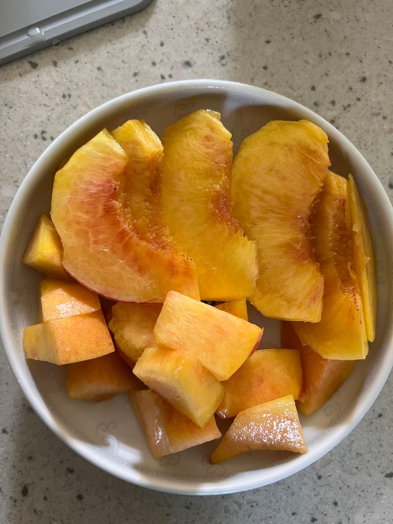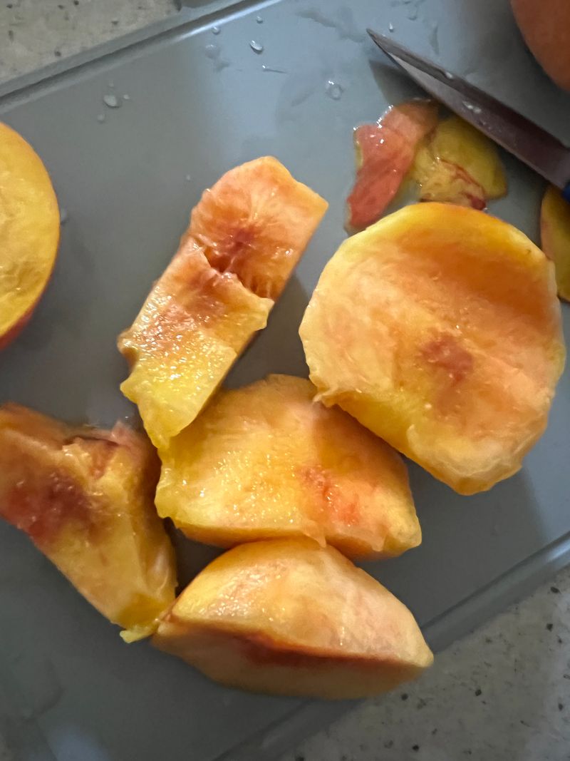 복숭아 손질하기 보고 해봐요 자르는건 웨지모양으로 자르는게 편하네요 비가와서 맛이떨어질까 걱정햇는데 맛잇는 황도 새미네따라서 먹어봣어요
