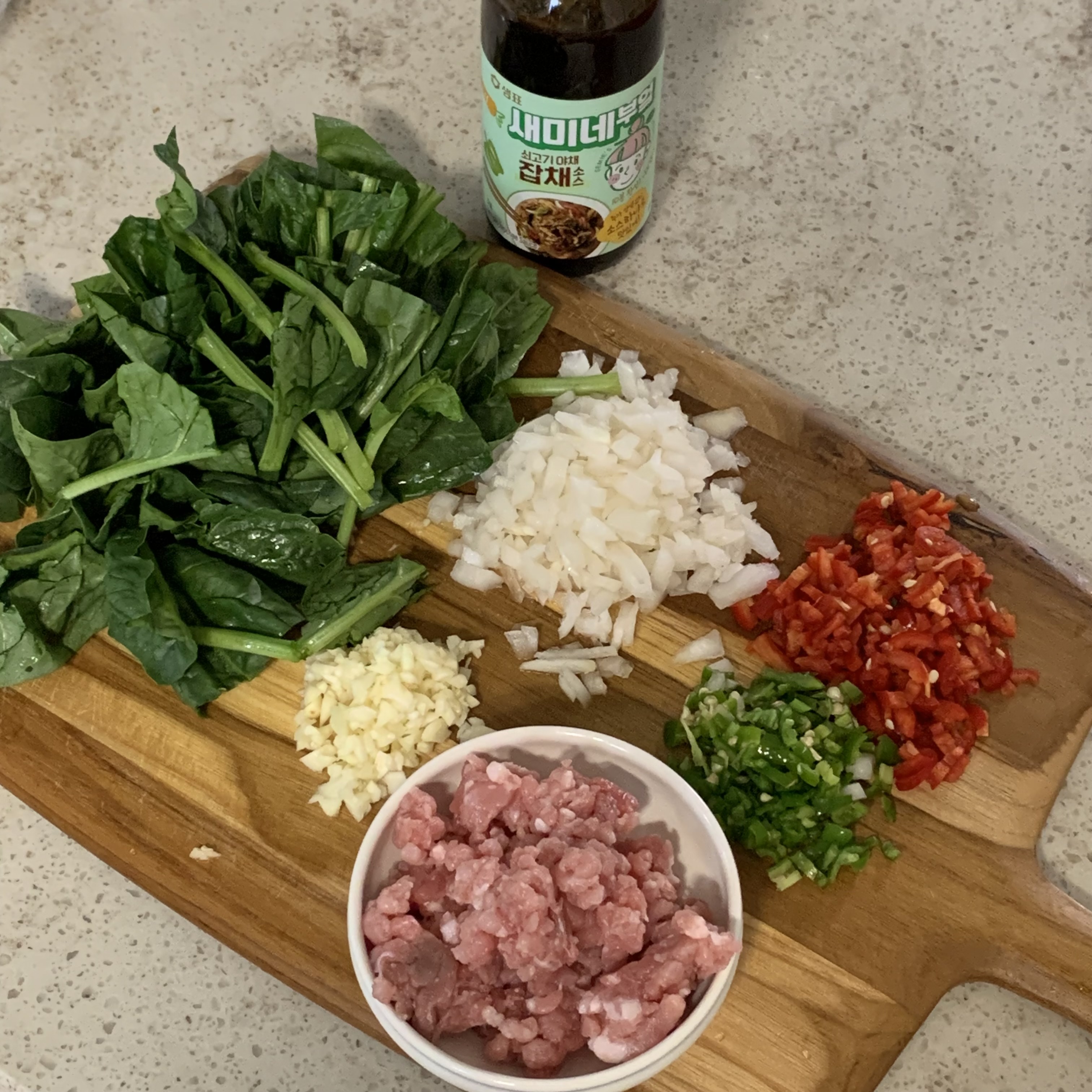 이 시금치 고기덮밥은 준비과정이 요리과정보다 조금 더 할 일이 많은 레시피예요 ㅎㅎ