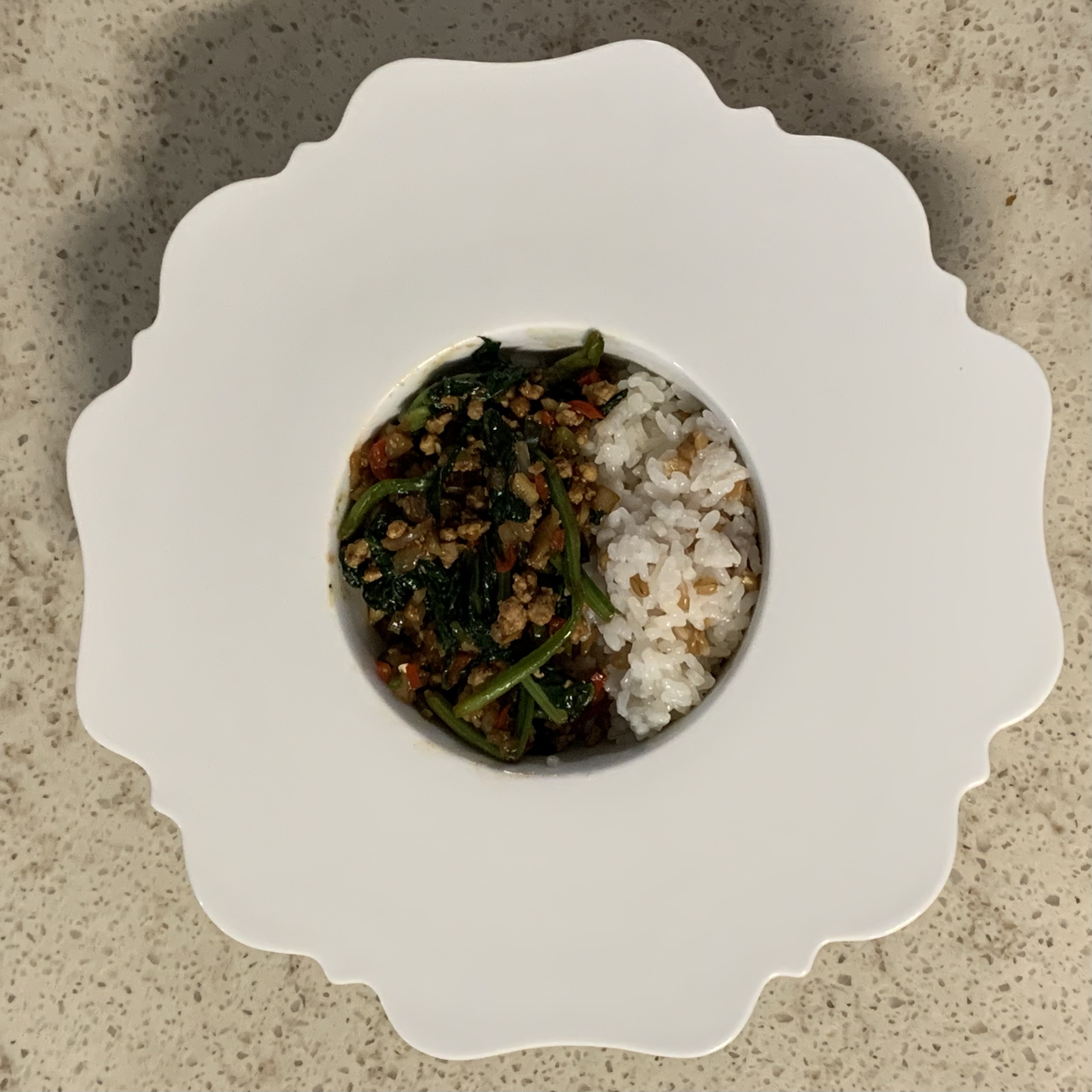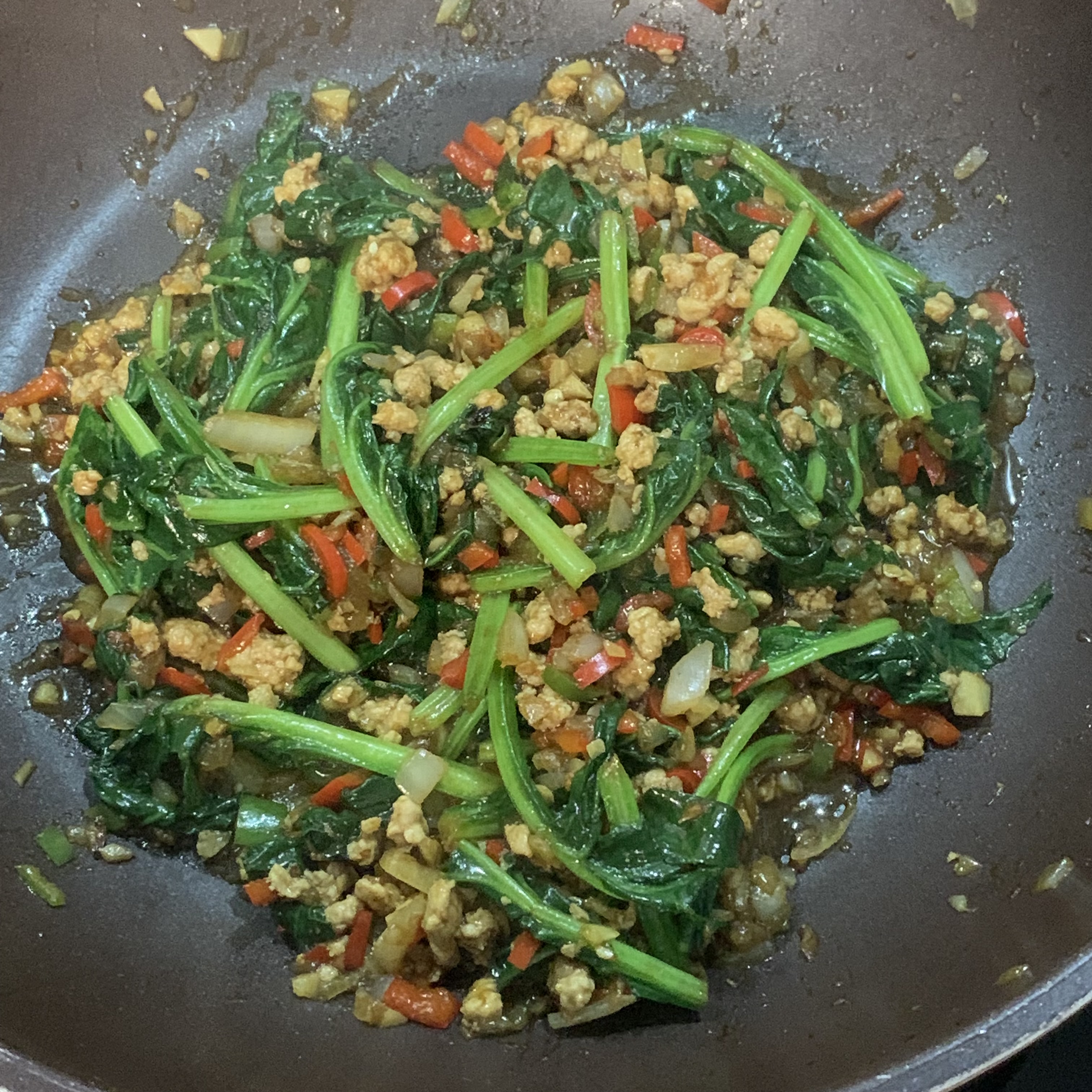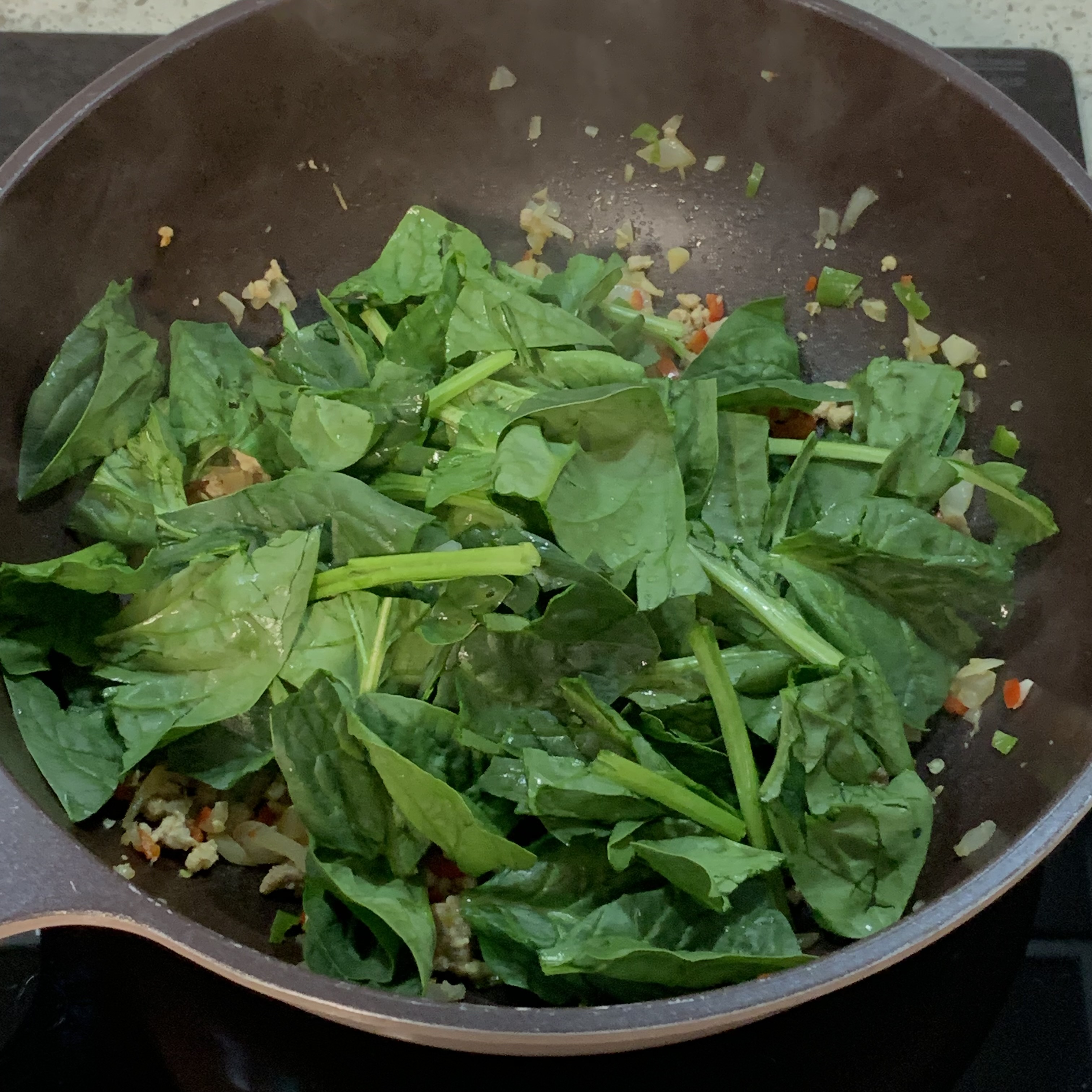 우선 고기가 같이 들어가기 때문에 시금치의 맛이 고기 맛과 함께 중화되고 , 또 소스가 생각보다 강한 맛을 내고 고추가 매콤해서 시금치 향을 싫어하시는 분들도 꽤나 괜찮게? 먹을 수 있을 것 같다고 느꼈습니다 !