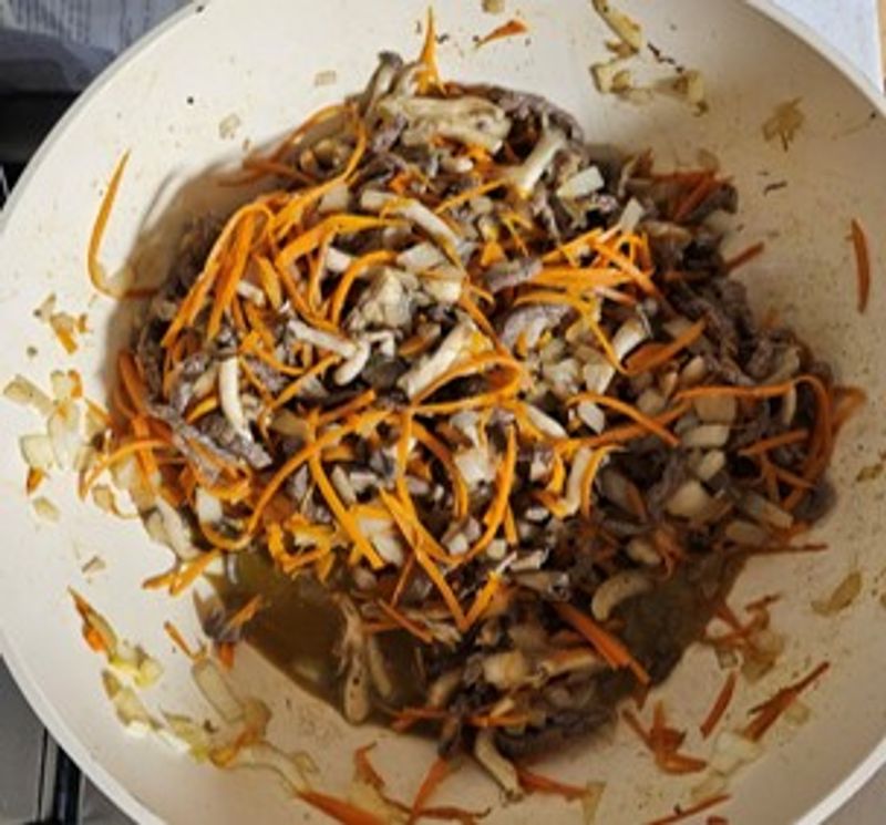 네..그랬더니 재료 써는 시간이 오래걸려 당면이 뿔고 뭉치더라고요.