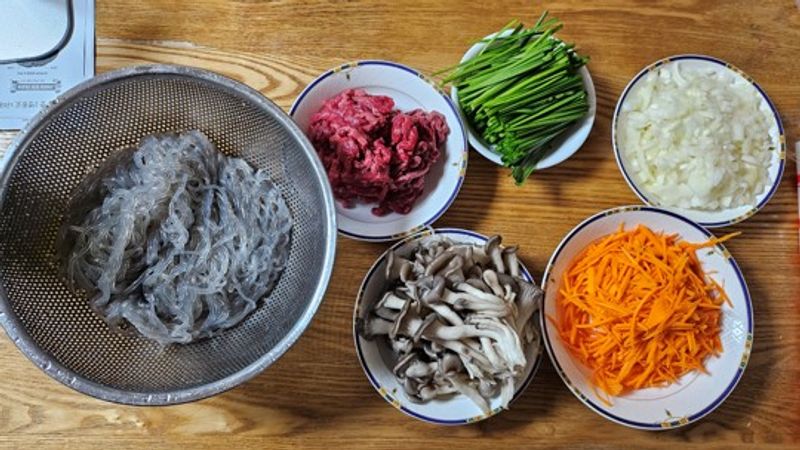 레시피에는 재료를 준비한 후 당면을 익히라고 되어 있어서