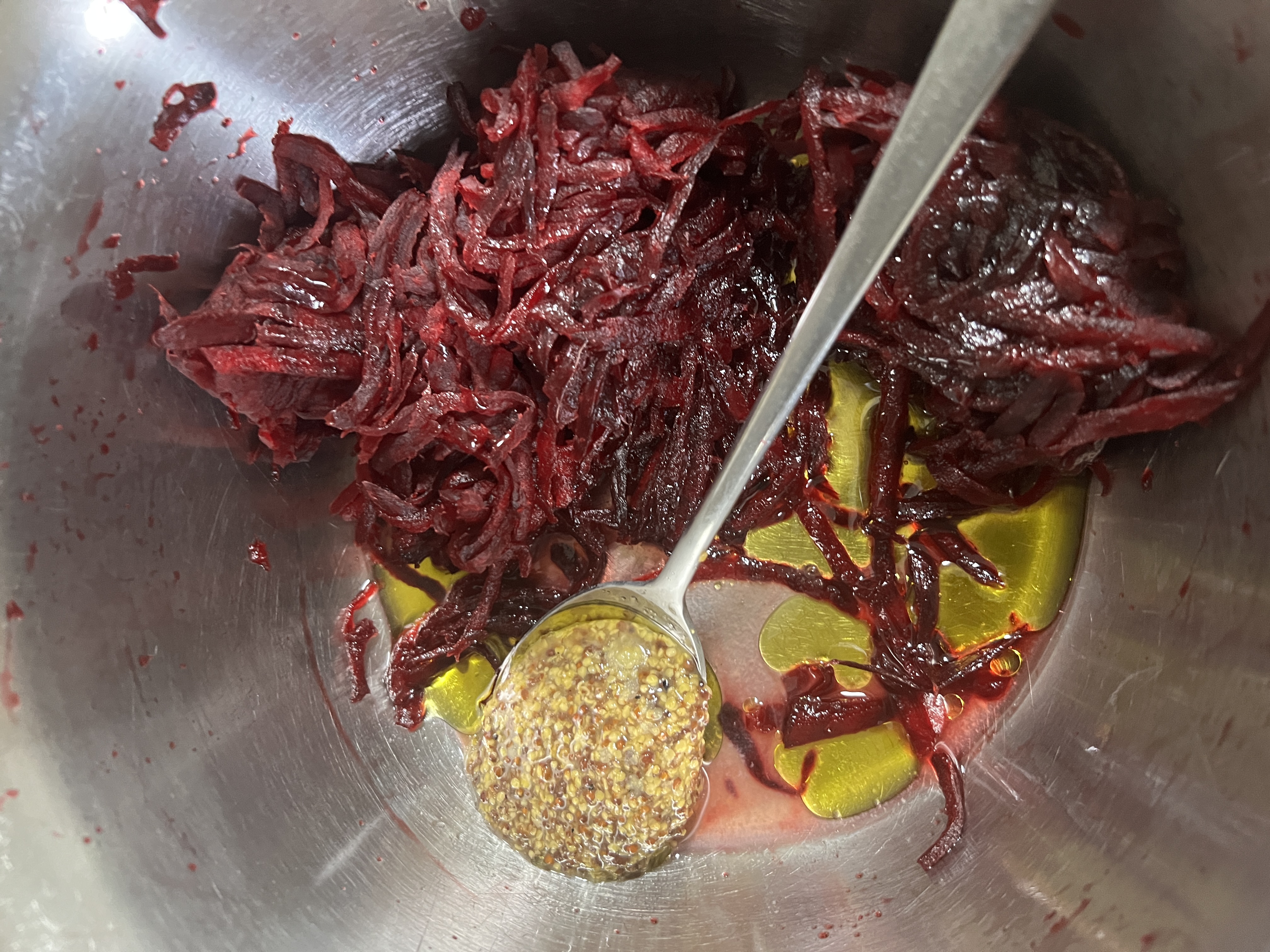소금에 재워준 비트를 꽉 짜주고 당근라페에 넣는 재료 그대로 넣어서 만들어요
