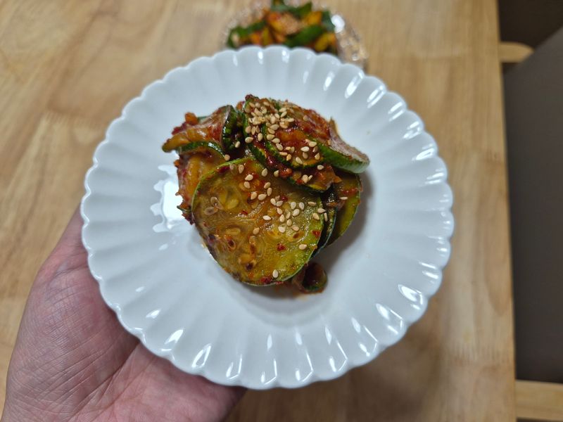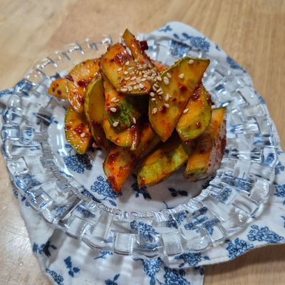 TV에 나온 구운 호박 나물이 너무 맛있어 보여서 제가 만들어 보았어요. 호박을 들기름에 구운 후 구운 호박에 고춧가루 식초 국간장 마늘 넣어 무쳐주면 끝! 위에 깨 뿌려주고 상에 올렸더니 우와! 정말 맛있자나요! 저는 연두도 좀 넣어주니 더 더 맛있었고요~
