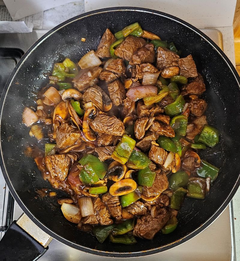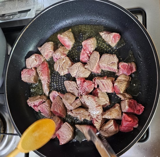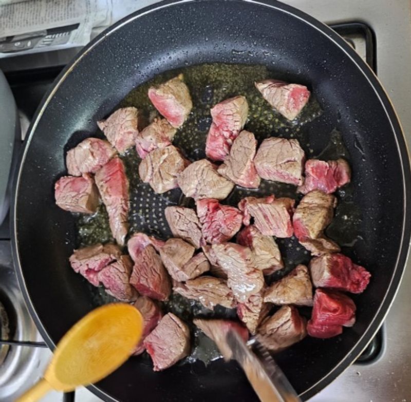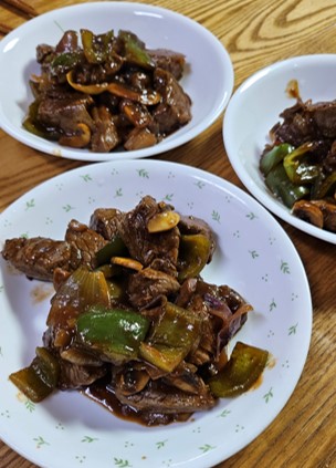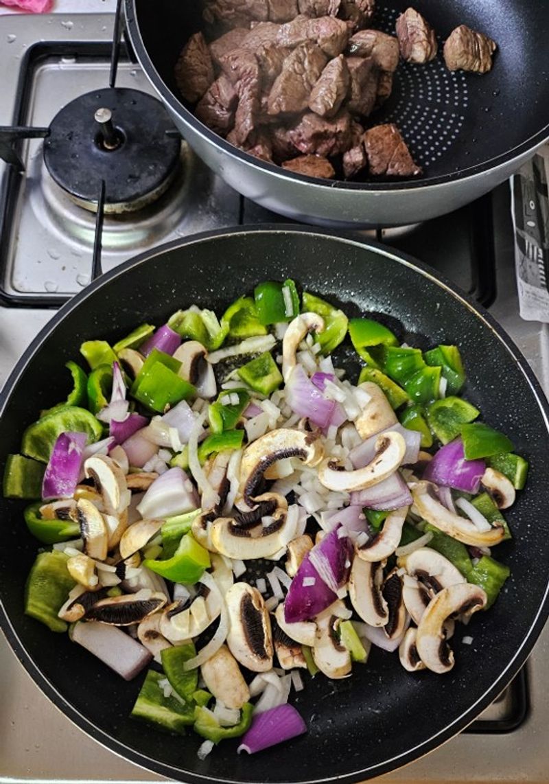 이번 찹스테이크 레시피에서 고기 먼저 볶고나서 야채를 따로 볶으라고 안내해주었는데요.. 그냥 같이 볶으려다가 솔루션을 보고 아 이런 차이가 있구나 하고 따로 볶았더니 확실히 질긴 감이 전혀 없었습니다.