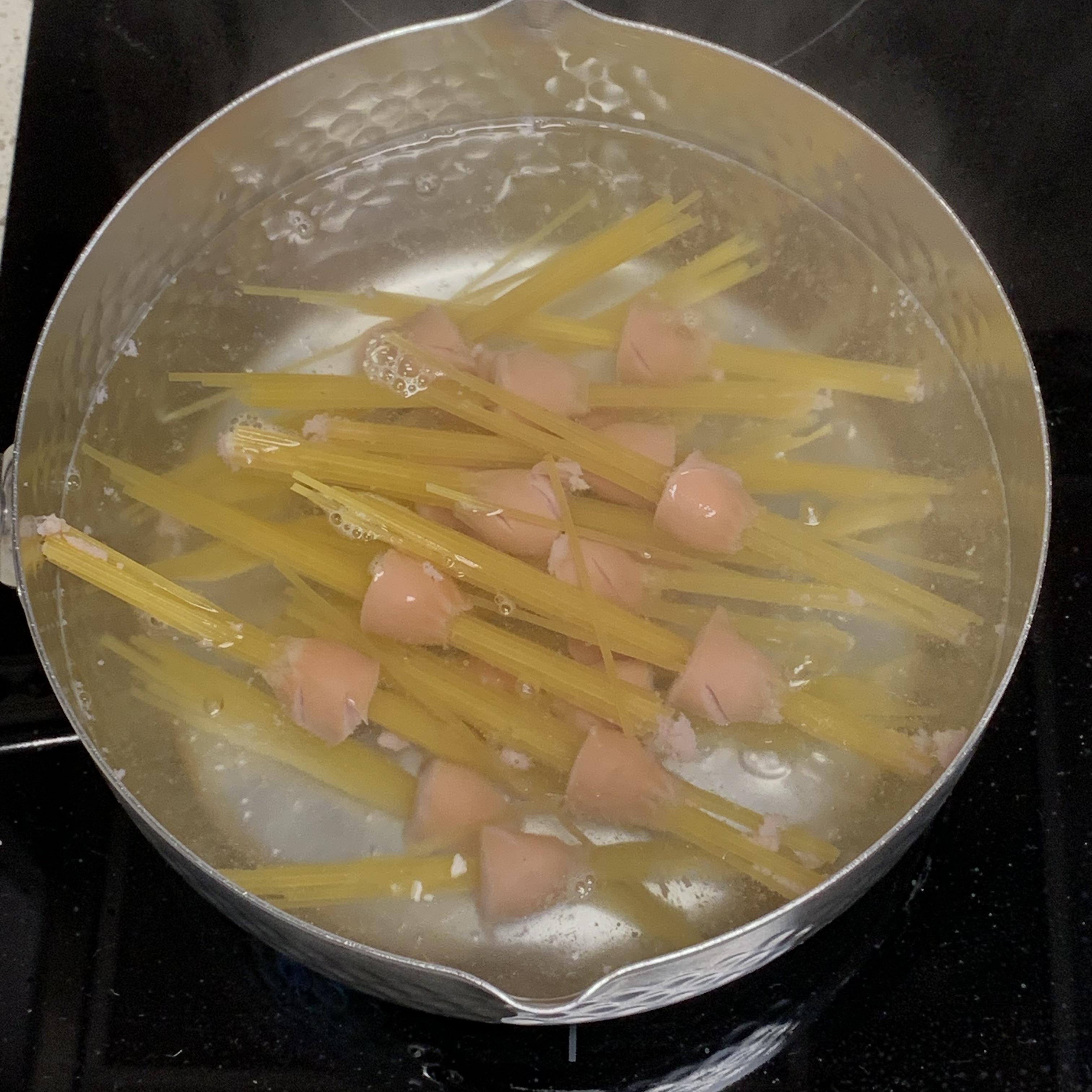 그리고 소시지는 작은 비엔나보다는 조금 큼지막한 것을 사용하시는 걸 추천드려요! 저는 작은 소시지를 사용했더니 면을 꽂을 때 꽤나 아슬아슬..? 하더라구요.. 소시지 찢어지는 줄 알고 ㅋㅋㅋ!