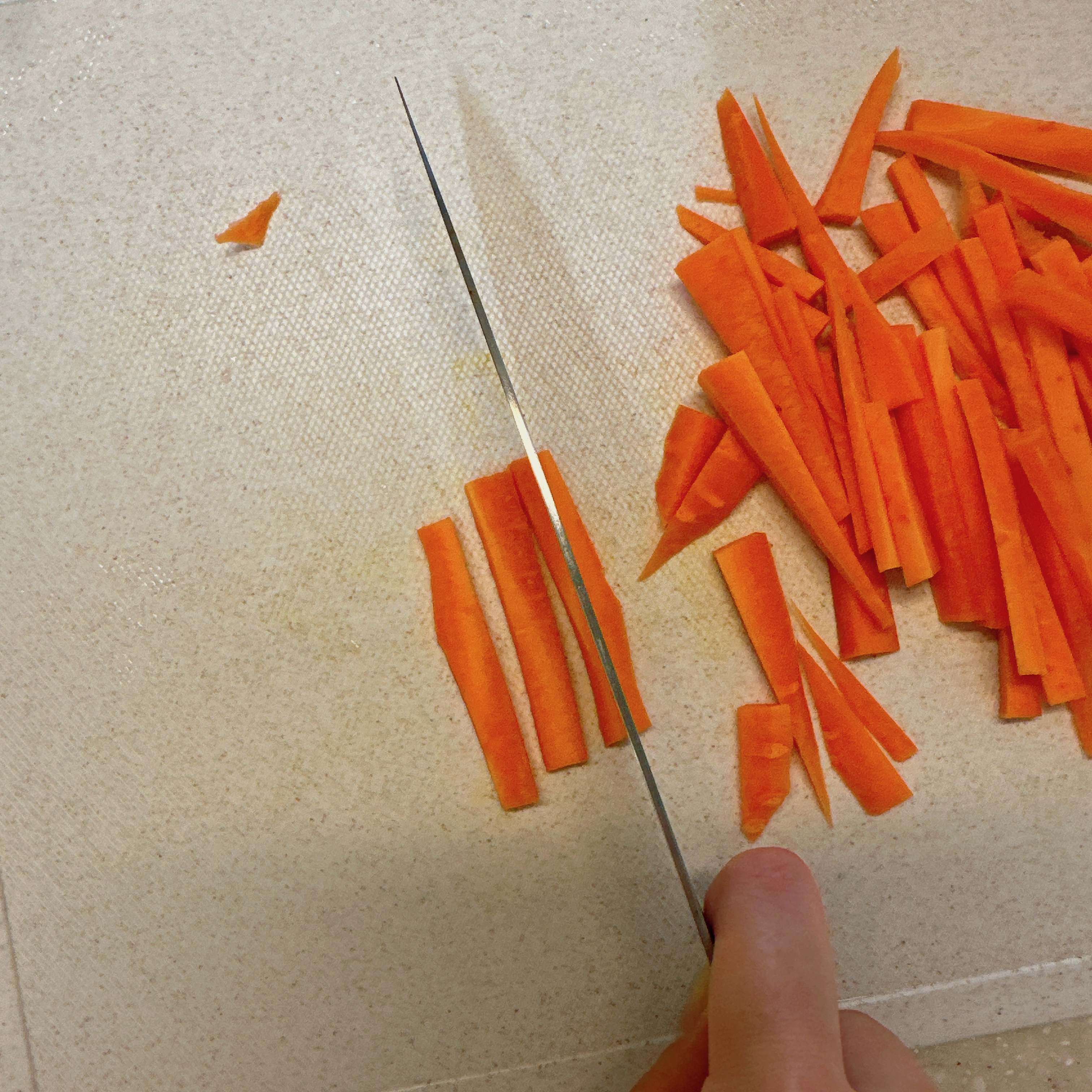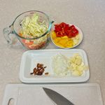 티비보면서 할아버지표 마늘 껍질을 또 열심히 깠습니다. 저번에 알려주신데로 꼭지 부분부터 잘라서 칼로 슥슥 벗겨냈어요! 그런데 점점 끈적끈적하게 달라 붙길래 물 묻혀가며 하니까 잘 떨어지더라구요~ 예전에 엄마가 마늘을 물에 담궈놓고 껍질을 까던게 이런 이유구나 이제야 알았습니다😂 그리고 야채들을 각 요리에 맞게 칼질을 했는데요, 이제는 다지기, 마늘 편썰기는 조금 자신이 붙은 느낌이었습니다~! 그치만 코울슬로를 위한 채썰기는 아직 어렵더라구요🥲 이번에도 채칼이 간절히 생각났지만, 꾹 참고 꿋꿋하게 이건 성장을 위한 과정이다! 리마인드하며 열심히 썰었습니다. 결과는 채썰기... 보다는 막대썰기에 가깝지만, 오히려 두꺼우니 씹는 식감이 좋은 코울슬로잖아! 럭키비키🍀 라고 원영적 사고를!!!