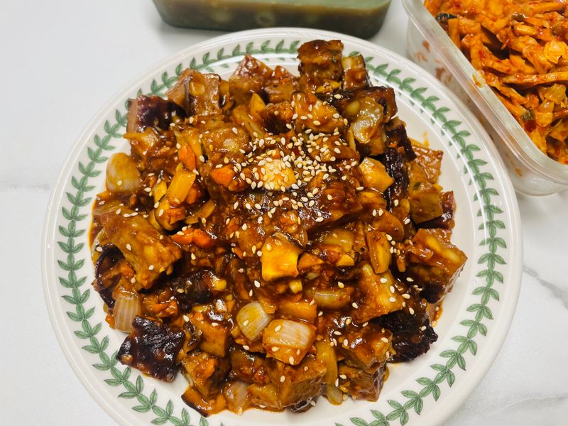설짝 졸여주고 그릇에 담아 완성! 파슬리 같은 거 뿌려주면 좋겠지만, 집에 깨밖에 없어서 깨 뿌리링 해줍니다 ㅋㅋ