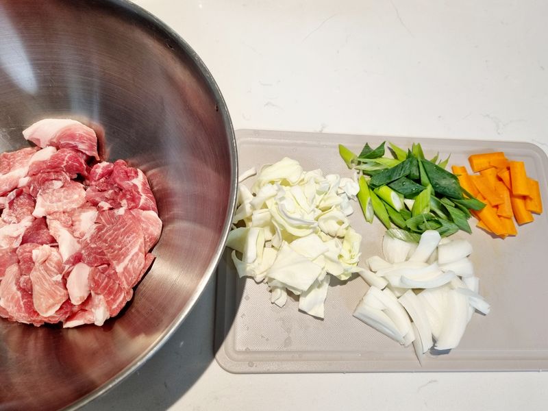 아이가 고른 재료와 남편이 평소에 좋아하는 빨간고기반찬으로 콩나물무침 & 고추장주물럭 반찬1가지, 메인요리 1가지 같이 해보았습니다!